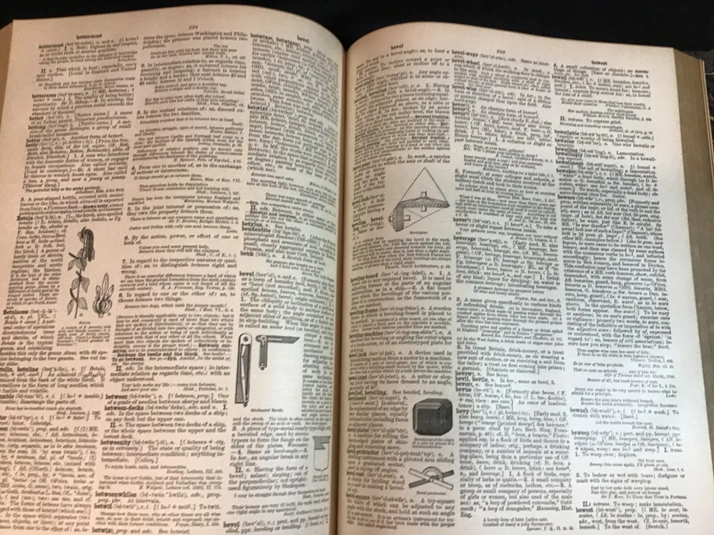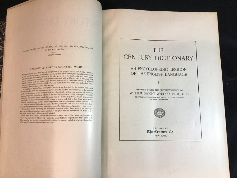 The Century Dictionary and Cyclopedia is one of the largest encyclopedic dictionaries of the English language. It was compared favorably with the Oxford English Dictionary and frequently consulted for more factual information than would normally be the case for a dictionary. This Vol I is in good condition for the age of the book. The edges and spine is worn but the pages are in very good condition. This edition boasts 16 colored plates as well as many black and white illustrations.