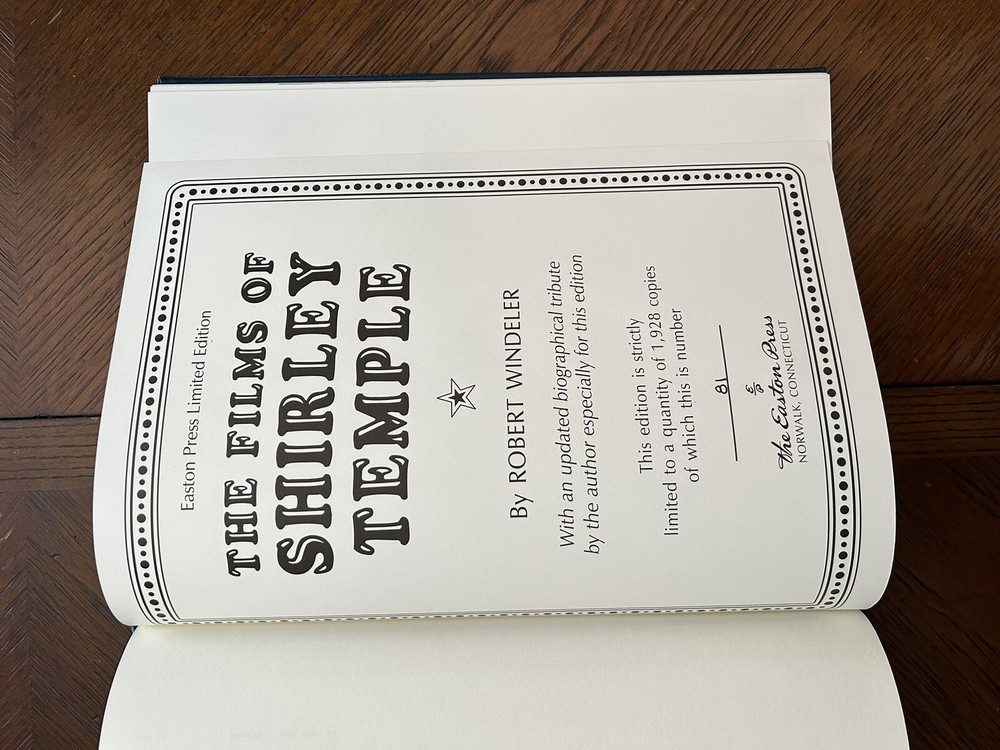 This is a stunning perfect condition limited edition copy of "The Films of Shirley Temple" from Easton Press, bound in luxurious leather and featuring Windeler's insightful analysis. This beautifully-crafted volume is an homage to the beloved child star's cinematic legacy and a must-have for any collector of classic films and literature. With its original facsimile print and elegant design, this book is a true treasure for fans of all ages.