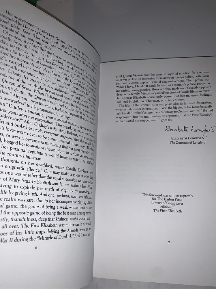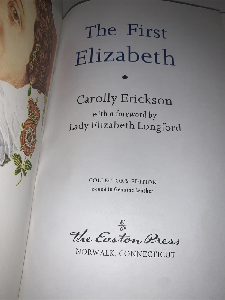 This exquisite leather-bound book titled "THE FIRST ELIZABETH Queen's Biography/Memoirs" is a true gem in any book lover's collection. Published in the United States by Eastern Press in 1989, this original printing is a limited edition and collector's item. The author, Carolly Erickson, takes the reader on a historical journey of Queen Elizabeth I and her reign, providing insights into her life and the political environment of Europe during her rule. This book is a must-have for any history enthusiast and a perfect gift for those who appreciate unique and rare books.