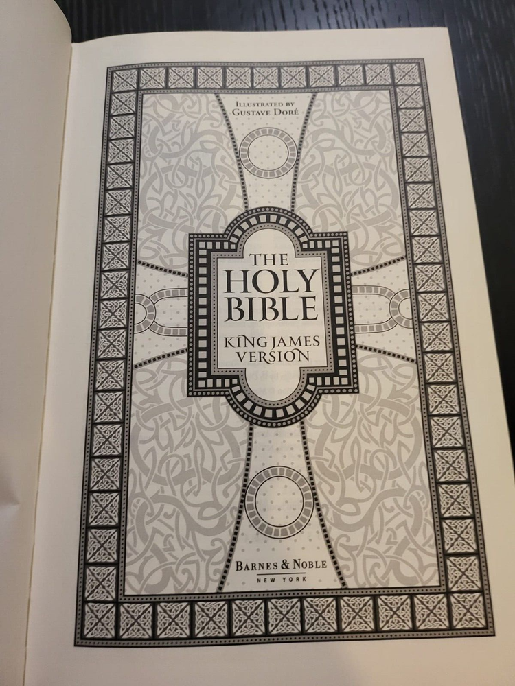 When the King James translation of the Bible was first published in 1611, it was the first time that many people throughout the English-speaking world were able to read the Old and New Testaments in their native tongue. The majestic scope and poetry of the King James translation's language made an incomparable impact on Western religion, culture and literature that still resonates today. This gorgeous bonded leather gift edition also contains over two hundred beautiful, rarely collected full-page illustrations by Gustave Dore (1832-1883) and has gilt edging, decorative end papers and a ribbon marker. Makes a beautiful gift. Please check my other listings. I have many other of the Barnes and Noble leatherbound classic series available. I'm happy to discount for multiple purchases. Make a (reasonable) offer on two or more!