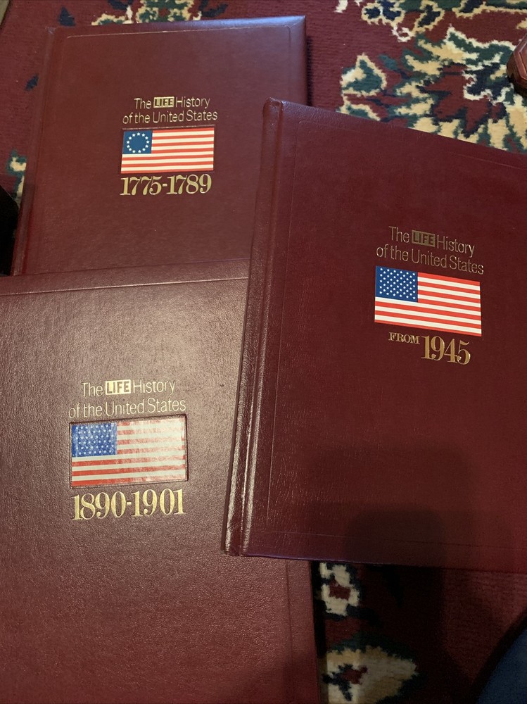 THE LIFE HISTORY OF THE UNITED STATES 3 volumes 1775-89,1890-1901,1945 Hard Cove. Great looking books for a bookshelf, faux leather bound. The inside of 1775 has some water damage as shown with a tear on the front pages. The other 2 are fine. (Water damage not visible from the outside if used for display). Awesome illustrations!