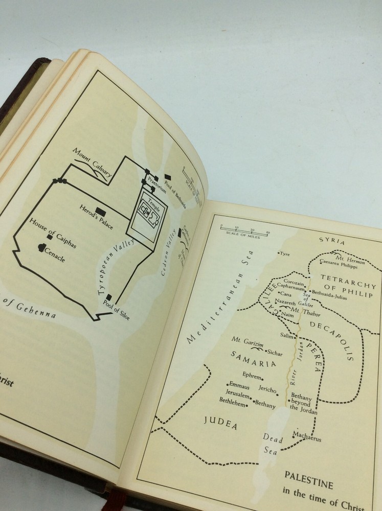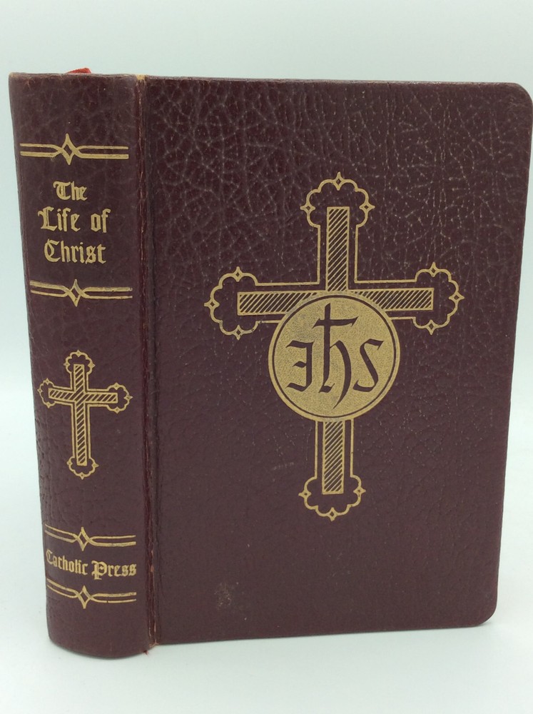 THE LIFE OF CHRIST: Our Lord's Life with Lessons in His Own Words for Our Life Today by Rev. John P. O'Connell and Jex Martin, eds. Chicago: The Catholic Press, Inc., 1954. Leather. 304p plus plates. A small hardcover book bound in gilt-decorated burgundy leather with gilt foredges and an attached ribbon bookmark. Very good condtion. Binding slightly cockeyed, but still tight, and edges lightly rubbed. Interior is clean. Item #186311 Illustrated with color plates, including a section on the life of the Blessed Virgin Mary. Measures approx. 7" x 5"