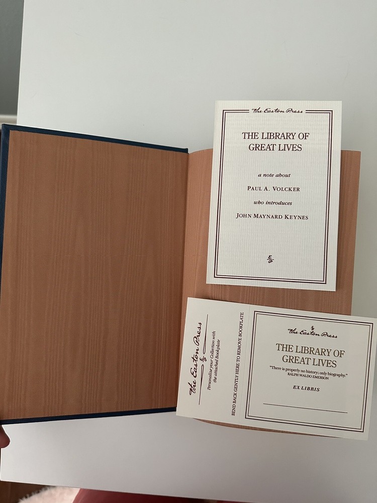 THE LIFE OF JOHN MAYNARD KEYNES by R. F. Harrod EASTON PRESS LEATHER BOUND NEVER READ NON SMOKING HOME NEW CONDITION UNATTACHED BLANK NAMEPLATE INCLUDED COLLECTOR'S EDITION A NOTE ABOUT PAUL A. VOLCKER WHO INTRODUCES JOHN MAYNARD KEYNES ALSO INCLUDED