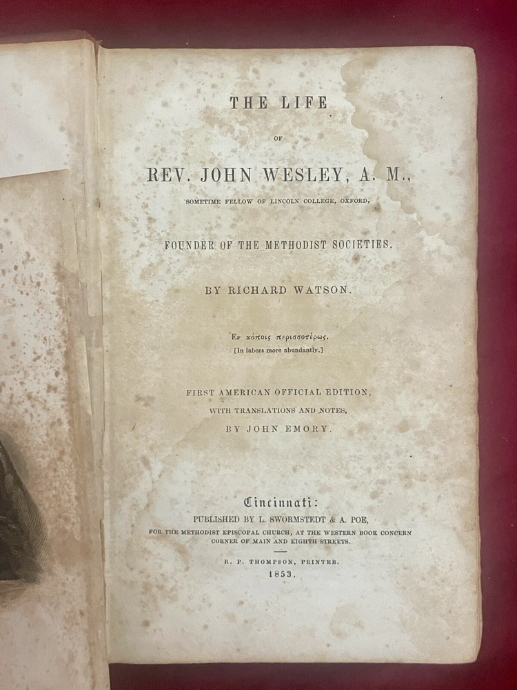 THE LIFE OF THE REV JOHN WESLEY: Richard Watson, 1853 First American Official Ed. ***Note: Please check pics showing the item condition. As this is a vintage book, some signs of wear, foxing (discoloration), aging, and inscriptions by original owner/s’ (which may or may not be present). Please feel free to reach out for more pics or info if needed. Thanks. This rare and collectible book is a must-have for any historical enthusiast. Written by Richard Watson, this 1st American Official Edition of "The Life of the Rev John Wesley" is a treasure. Published in 1853 by L. Swormstedt & A. Poe in Cincinnati, this leather-bound book is a fascinating glimpse into the life and times of the famous Methodist preacher. The book is in its original form and is a true gem for collectors. The language of the book is English, and it covers a wide range of topics related to historical biography and autobiography. The book is perfect for those who are interested in the history of the United States and the life of one of its most influential figures. —————- **PLEASE NOTE*** I'm not a collector or expert so please see all photos for condition and let me know if you have any questions or need any more photographs. Due to the reason of light and the display, you can see the picture may have a slight color difference problem, this is inevitable, please understand. Please review images to make your judgment on cosmetic condition which I believe is a matter of personal opinion. You will get what you see. Please keep in mind that the majority of the items in my store are used, vintage or antique. I try to list every item accurately and to the best of my ability including any damage that I may find. There may be surface wear, scuffing or minor things to items that would come with normal use so if there is something specific you are concerned about please ask. If you see a mistake or flaw in my listing PLEASE let me know! I try to research each item and now and then I get it wrong. I welcome input and will make changes when I can verify your input. I have an antique & vintage shop in San Diego close to downtown with a wide range of antiques, furniture, collectibles and other unique items. Open to the public by “appointment” usually starting in the afternoons every day. 1240 Sampson St., San Diego, 92113 SanDiegoantiqueandunique.co Please check our other listings. Thank you Please read our Terms and Conditions in full before bidding, placing an offer or buying an item. Buying from us you are agreeing to accept and abide by the terms and conditions set out below, if you purchase an item we will assume you have read this: Combined shipping: We do combine shipping on multiple purchases. A combined invoice will be sent on multiple purchases. Please do NOT pay for items before a combined invoice is sent, otherwise items cannot be combined. If buying large orders where it would be difficult to estimate combined shipping we will send a combined invoice and once payment is received we will pack and weigh the items and look to refund a portion of the shipping overages. International buyers: International buyers, we use the Ebay Global Shipping program. This means either you need to combine the items on your end for multiple items or pay for each of the items separately and when sent to Ebay’s Global Shipping center we will refund a portion of the shipping overages. We CANNOT combine shipping on our end and will not use any other form of shipping. We do not control import fees or taxes. If you are unable to agree to the above rules please refrain from bidding, making offers or purchasing . Please see Ebay’s official statement below. The Global Shipping Program already provides your buyer with an invoice for all applicable item, shipping, and import charges. Unfortunately, you can't edit these charges, even to offer a shipping discount. When your buyer pays, just ship the item to the US shipping center specified, and the Global Shipping Program will forward it to the buyer. Your buyer will directly pay you the purchase price of the item, plus any domestic shipping cost you specified in the listing. Item Description and Condition: Please see an item specifics for condition and details. We run over 3000 auctions at all times and descriptions may appear minimal but we are very happy to answer any questions you may have as long as you ask them BEFORE committing to buy the item or making offers. Do not ask questions within the offer. Items may differ slightly from the photo if they are part of a multiple listing or have been re-listed. If you are unsure of anything please ask BEORE buying. We do not answer questions after the item is paid for as the item will have already been sent to our shipping dept to be sent out. Item Packaging: We do not guarantee the condition of any packaging on any item. If an item is described as new it is the item inside the packaging we are describing not the packaging, new means the packaging has not been opened and the item inside is unused. If a package has dings, creases or crushed bubbles we will do our best to indicate as such, however, view the photos provided and any questions please ask BEFORE making an offer or purchase. Payment: We only accept payments through Ebay. Please pay within 2 days. Unpaid item reminders will be automatically sent after 2 days. If waiting for additional items to end, payment is expected within 5 days of the first ended item. Shipping: Items are usually shipped the day after payment with the exception of items paid on Fri/Sat/Sun which are then usually shipped Mon or Tue. A tracking number will be provided once we pack and look to ship the item. Returns: We do accept returns, please contact us as soon as possible stating the reason you wish to return the item. Apart from exceptional circumstances we do not pay for return postage or refund initial postage costs. Blocked Buyers: In some rare instances we need to block buyers from making offers or purch