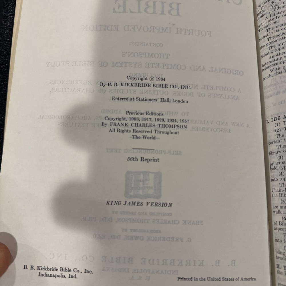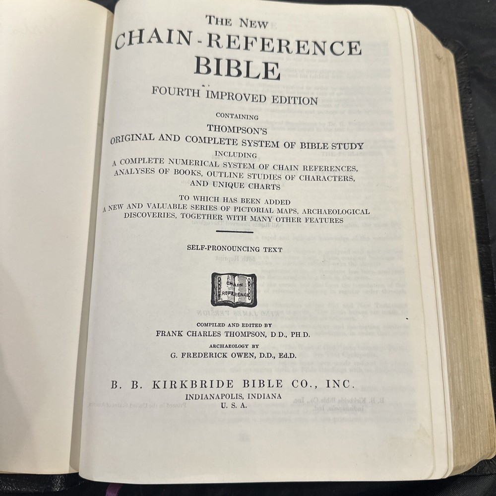 THE NEW CHAIN-REFERENCE BIBLE KJV Thompson 1964 B. B. Kirkbride Bible Co. Good condition, please reference pictures