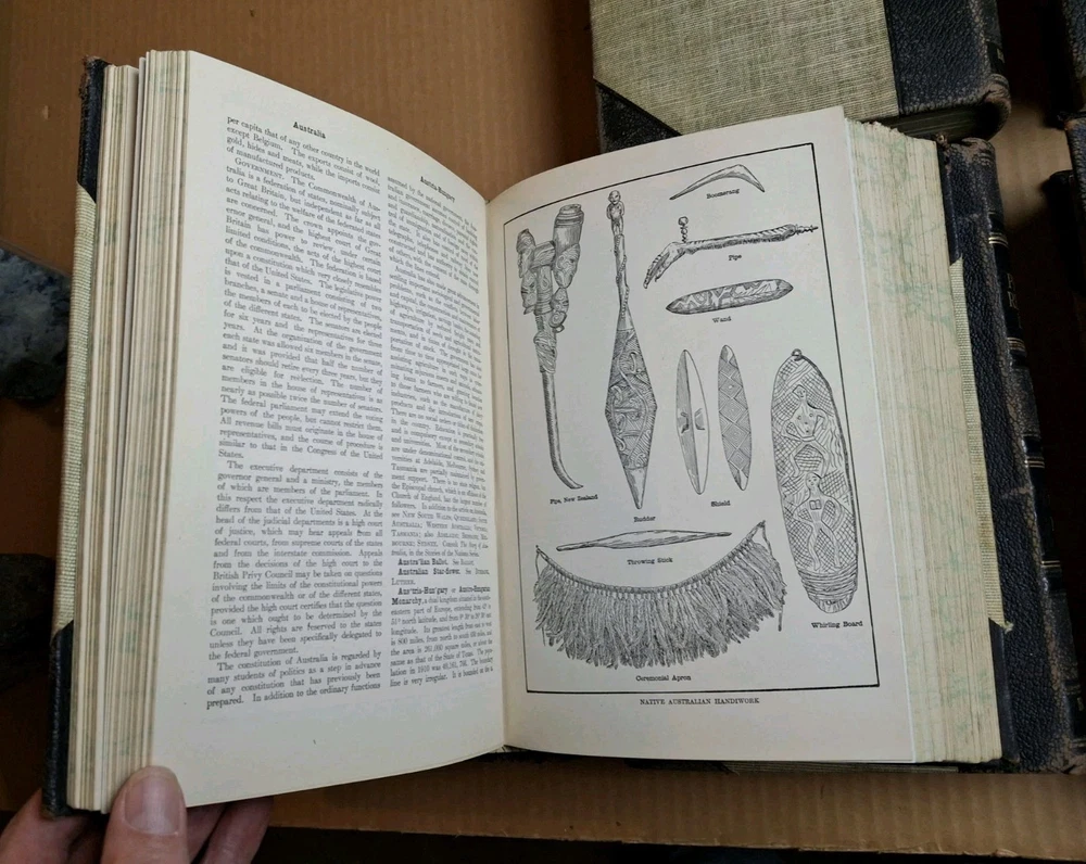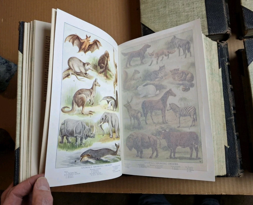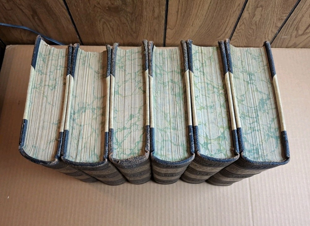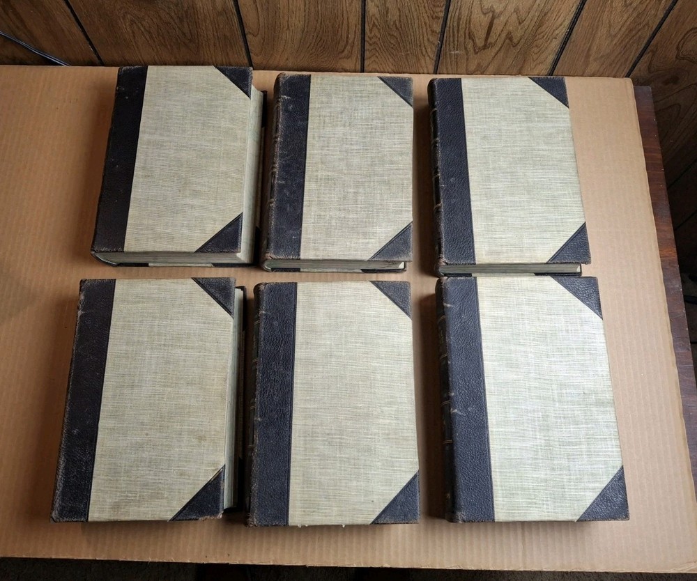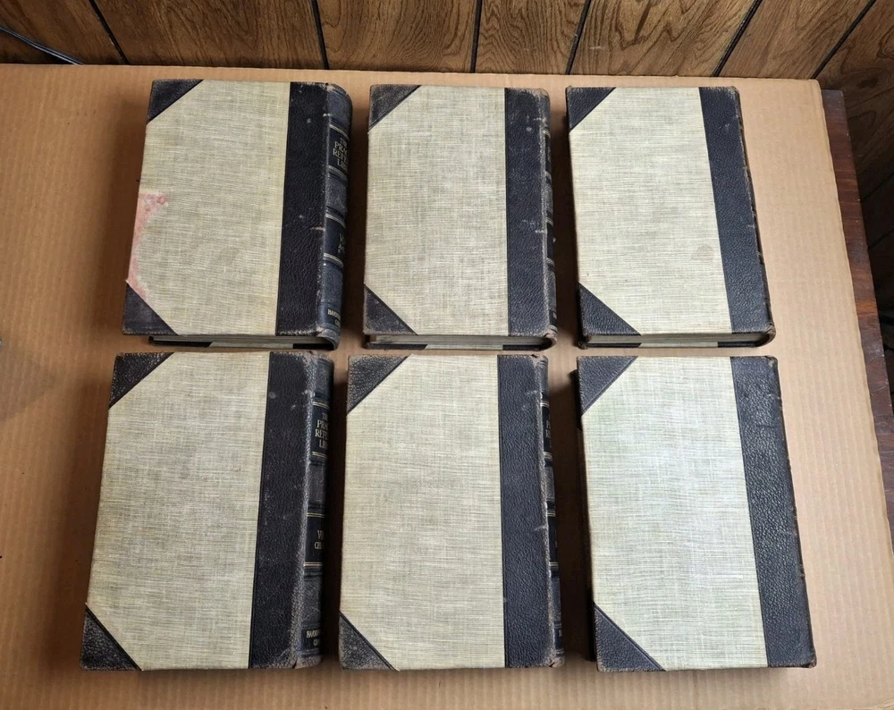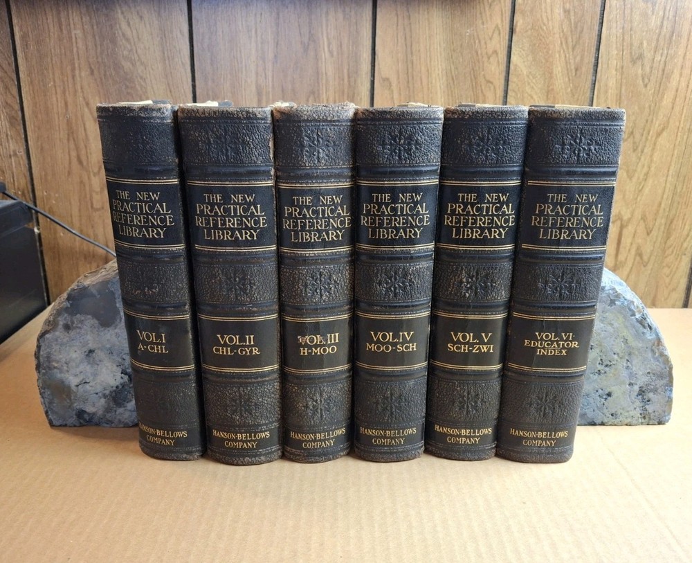 THE NEW PRACTICAL REFERENCE LIBRARY COMPLETE SET VOLUMES 1 - 6 Editor In Chief Charles H. Sylvester Published by Hanson-Bellows Company 1914 Edition This is a really nice set. It is leather bound at the spine and corners with the rest of the boards being cloth. All six volumes are tightly bound with clean pages. Volumes 1, 2, and five have what I would call minor spine leans that are easily correctable with proper shelving. They have marbled text blocks and are filled with many illustrations including numerous color and black and white full page glossy images. Free Shipping and Handling via USPS Media Mail PLEASE SEE MY OTHER LISTINGS FOR MORE BOOKS