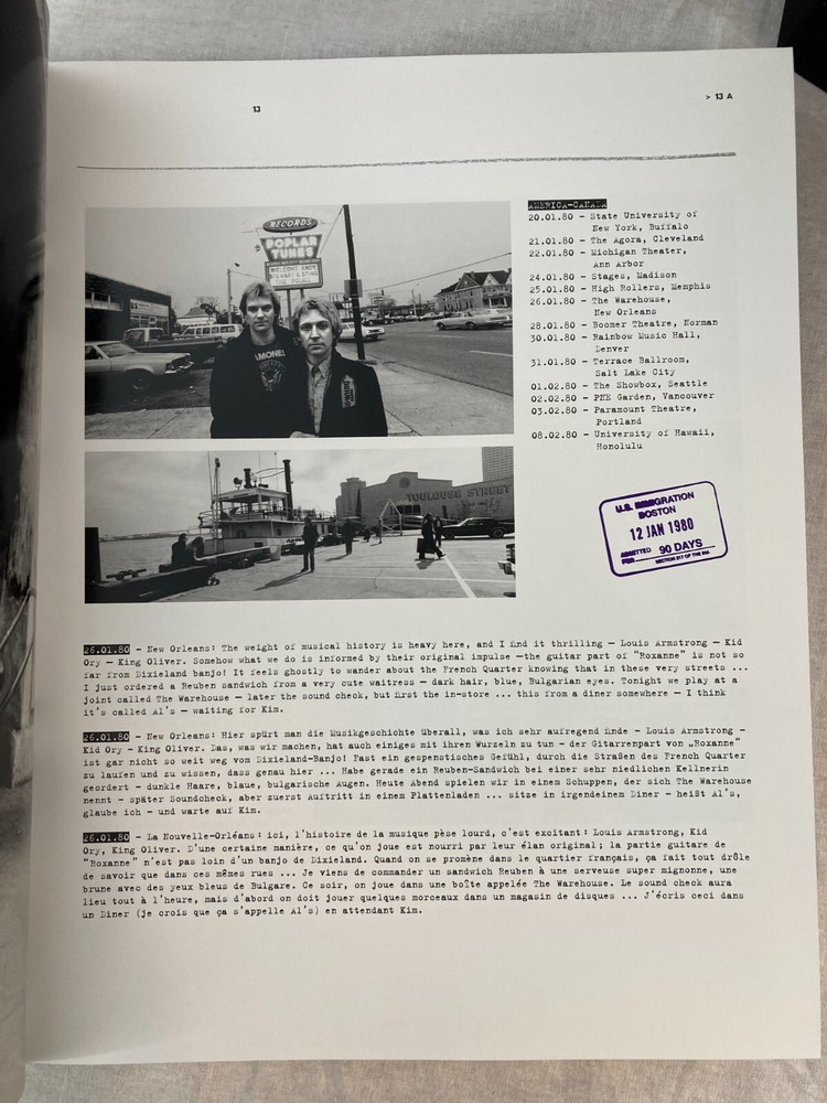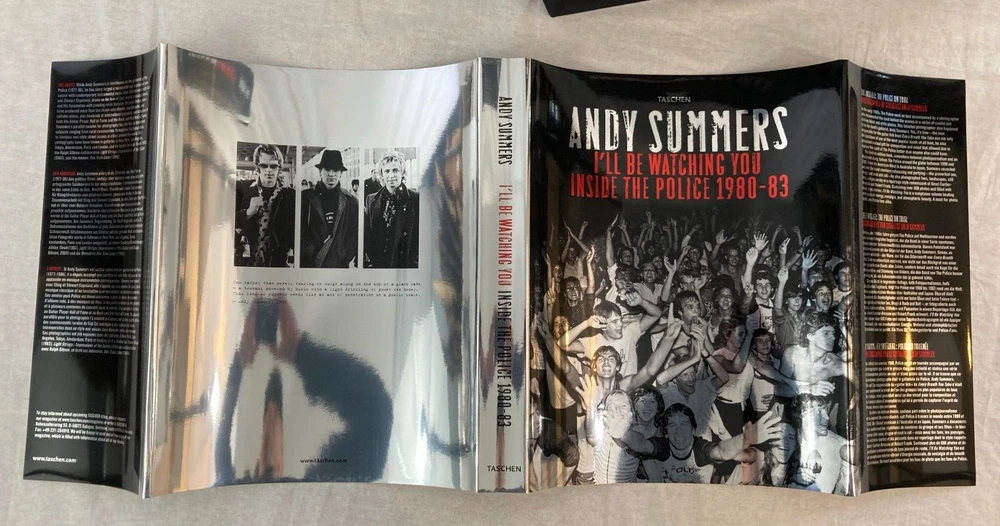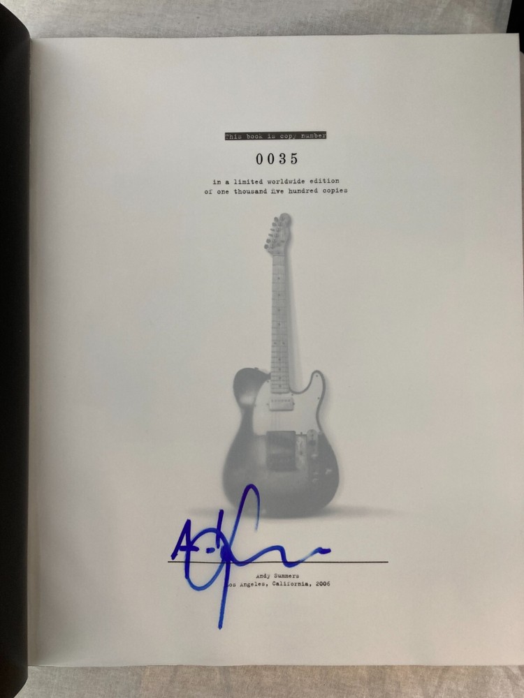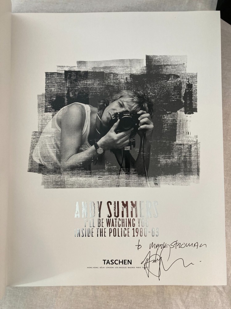 ARTIST : Andy Summers (Poulton-le-Fylde, United Kingdom, b, 1942 TITLE : I'll Be Watching You: Inside The Police 1980-1983 PUBLISHER : Taschen, 2007 DESCRIPTION : Up for auction is a signed, limited edition of Andy Summers' photographic autobiography I'll Be Watching You: Inside The Police 1980-1983. The book features Summers photographs of The Police during that pivotal four-year span. The book was published by Taschen in 2007. Taschen limited the signed edition to only 1,500 numbered copies. This is copy 35. The book is signed by Summers twice, once on the book's colophon and also on the book's title page with an inscription to Mark Stroman, a longtime music executive. CONDITION : The book is in fine condition with only minor wear, see photos. The spine and boards are tight and straight. There are no internal markings, other than Summers' signature. There is no previous owner's bookplate. The clamshell case is in very good condition with minor wear and bumping to the corners, see photos. Don't forget to take a look at my other signed, limited edition books and prints for sale. Thank you