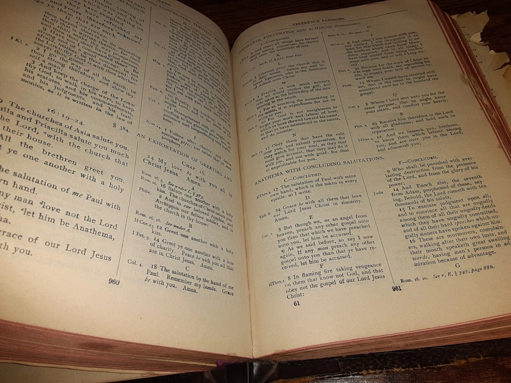 THE REFERENCE PASSAGE BIBLE - NEW TESTAMENT 1912 Leather Alpha Publishing. ships priority see photos for condition as bible is antique and has lots of wear...and some tape. also see stickers of previo...