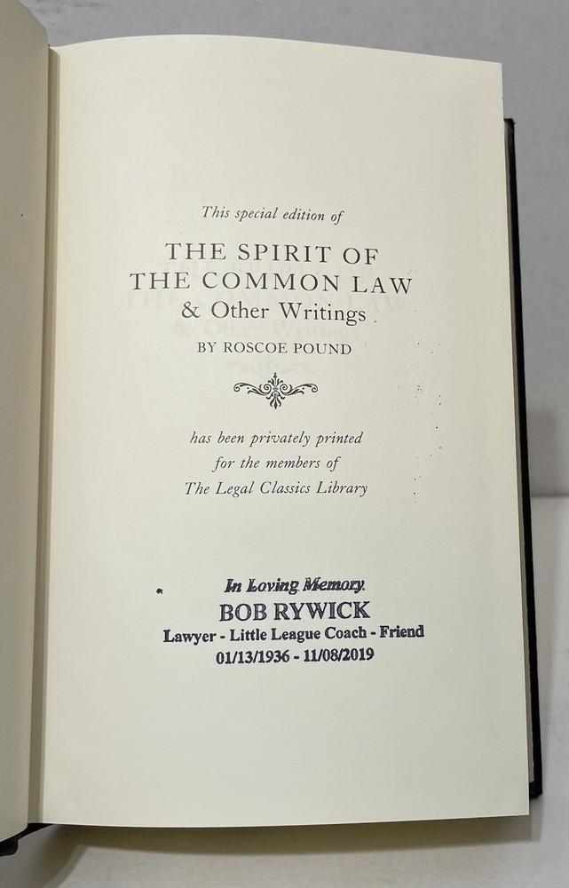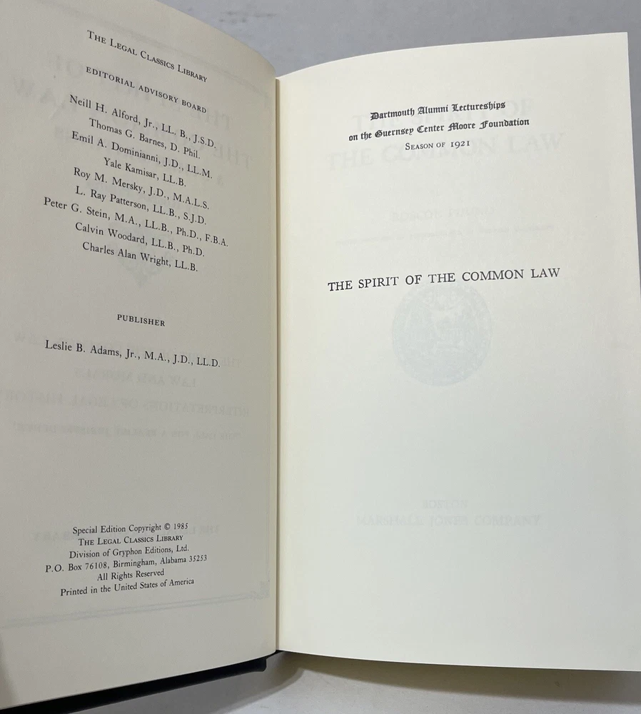 This is a special edition of "The Spirit of the Common Law" and other writings by Roscoe Pound, published in 1985 by The Legal Classic Library. The book is fine-bound and written in English, making it a valuable addition to any collection of antiquarian and collectible books. The topic of the book is writing, and it is classified as a reference book in the category of books and magazines. The publisher is The Legal Classic Library, and the year printed is 1985. This book is perfect for those interested in the history of the common law and writing, and it is a must-have for any book collector.