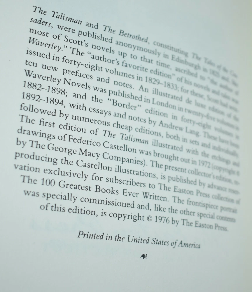 THE TALISMAN by Sir Walter Scott 1976 Easton Press Leather Book In great condition, bought then placed on my bookshelf for decades. Please see my many photos. Check out my many other listings, many mo...