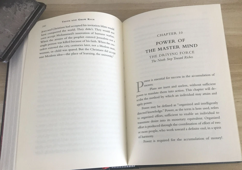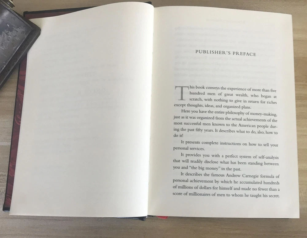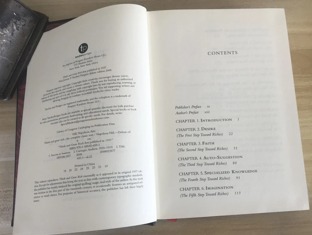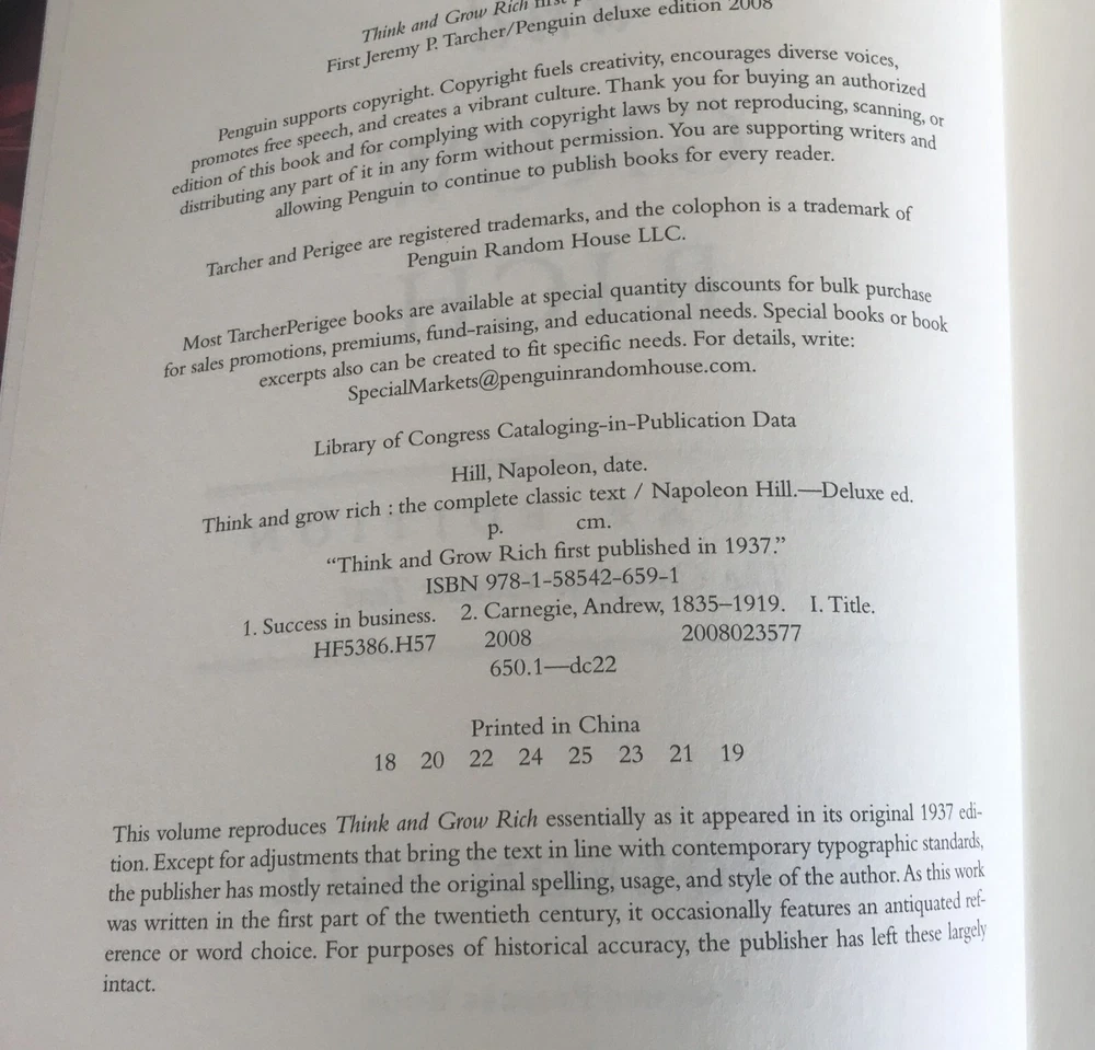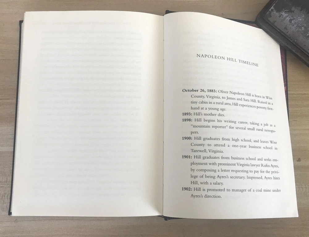 THINK AND GROW RICH THE COMPLETE CLASSIC TEXT NAPOLEON HILL VF COLLECTOR'S EDITION TARCHER PERIGEE 2008 This landmark bestseller is presented in perhaps its most beautiful publication ever with this special hardcover edition, featuring: leather jacket with gold stamping, gold gilt edging and black inlaid text, marble endpapers, cloth book mark, author time line and biography. Called the “Granddaddy of All Motivational Literature,” it was the first book (originally published in 1937) to boldly ask, "What makes a winner?" The question is answered by Hill who spent a fortune and the better part of a lifetime of effort to produce the “Law of Success” philosophy that forms the basis of his books. Top highly collectible edition is in very fine condition Cover, spine and back cover show little if any wear. Interior pages are just about pristine. Perhaps the best edition for reading and collecting.
