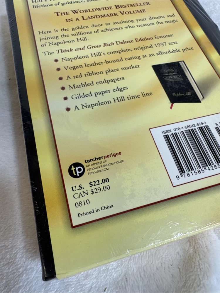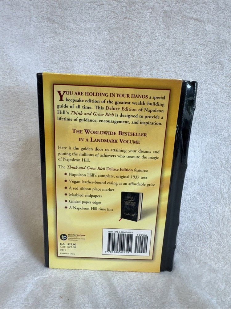 THINK AND GROW RICH by Napoleon Hill Vegan Leather Bound Deluxe Edition *Sealed* Never opened. Sealed from Barnes and Noble. Bought this to give as a gift... but I decided the recipient wasn't worth of this sage advice. So now it's your lucky day. Looking for a new home. WHAT TO EXPECT - QUALITY: I only sell quality items that I've owned and I check them carefully. - INFO: I do my best to give accurate descriptions, however If there is any info you would like other than what is listed, I will be glad to provide it. - NEGATIVE FEEDBACK: The 1 negative feedback I have received was for a Leapster electronic handheld game. I had tested the unit before shipping. When it arrived at the buyers location the screen was unresponsive to the stylus. I offered the buyer a full refund. Upon receiving the unit and refunding the money I realized it did work - it just needed a simple reset - instructions where found easily on google. After above average service and quick turn around - I was rewarded with a negative feedback on that transaction. If you feel the need to give me negative feedback - let me know you are unhappy before hand so we can try to work it out. - POSTAGE: The post office is a magical and confusing place and I do my best to calculate exact shipping - however sometimes I'm off. Shipping Happens! Know that I'm not trying to take advantage of you. - RECYCLED: When possible, all items will be shipped in recycled boxes and packing materials - thats what my grandmother taught me and she was very wise. - FREE: Items come from a smoke free, pet free, organic home. - LUCK: I hope we can do business together. Good luck.