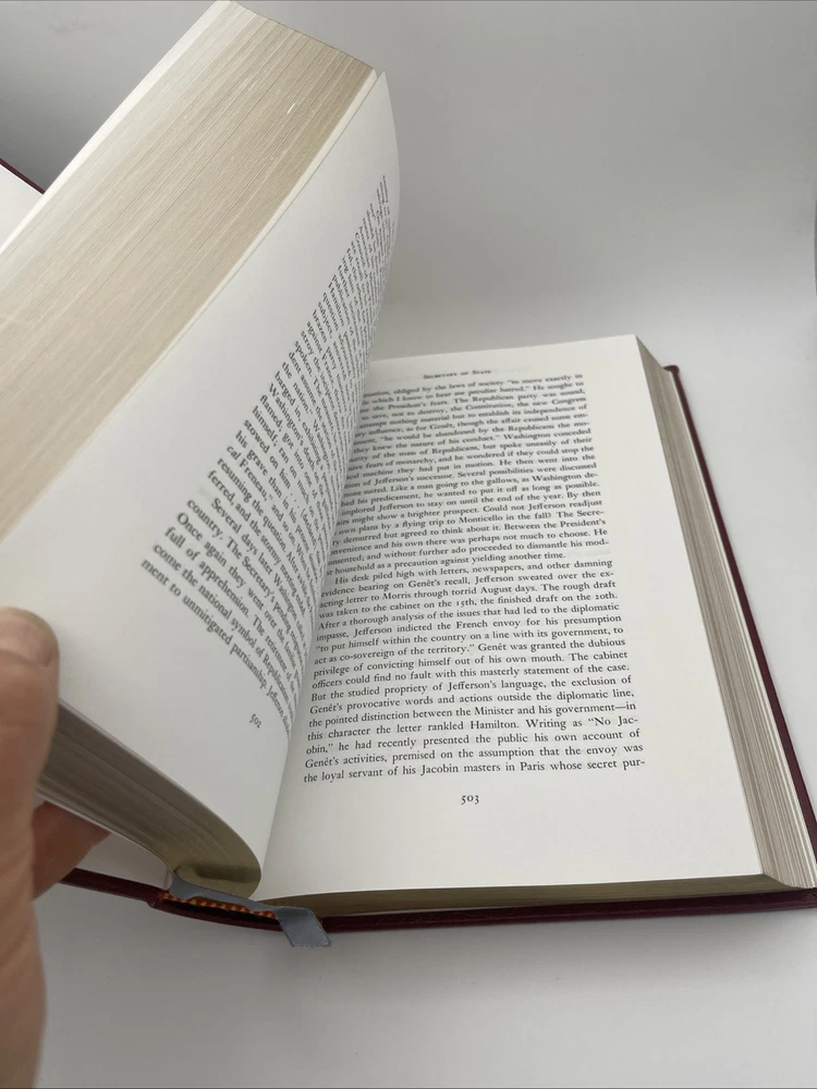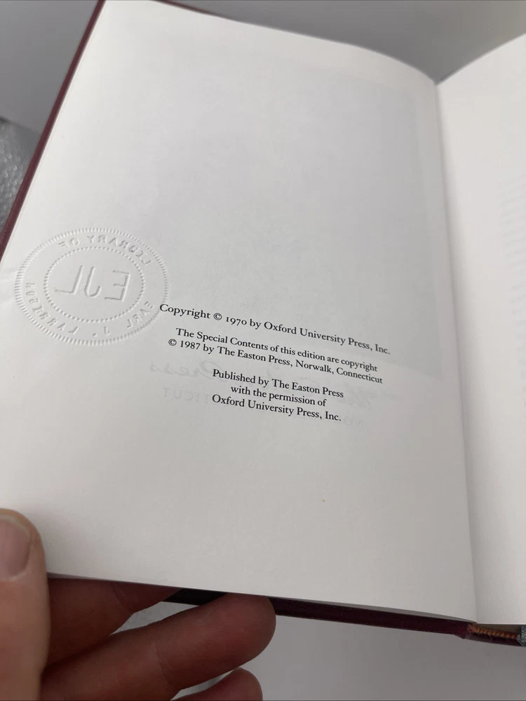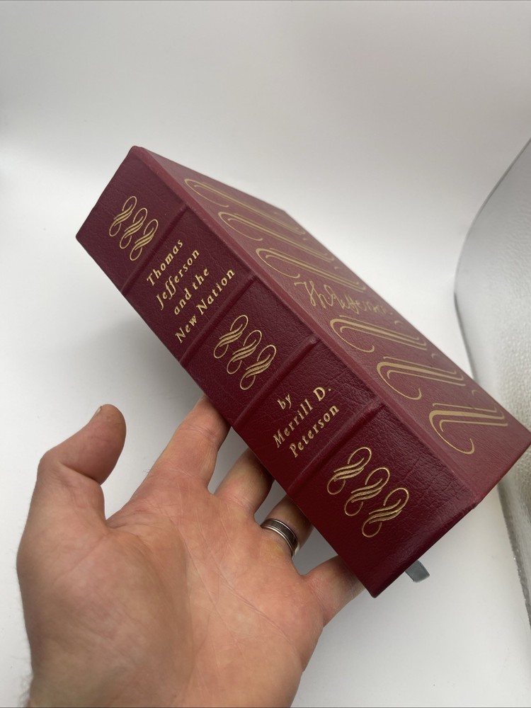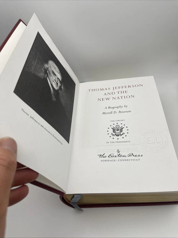 Excellent shape although there is some writing on the first blank page. Explore the life of America's third president with this luxurious first edition of "Thomas Jefferson and the New Nation" from Easton Press's prestigious Library of Presidents series. Published in 1987, this collector's gem, bound in elegant leather, showcases gilt detailing and a hubbed spine, exuding classic sophistication. Authored by Merrill D. Peterson, this biography delves into the intriguing biography and autobiography of one of the most fascinating figures in North American history. A treasure for both bibliophiles and history enthusiasts, this book is a testament to the era it represents and the influential people it highlights.