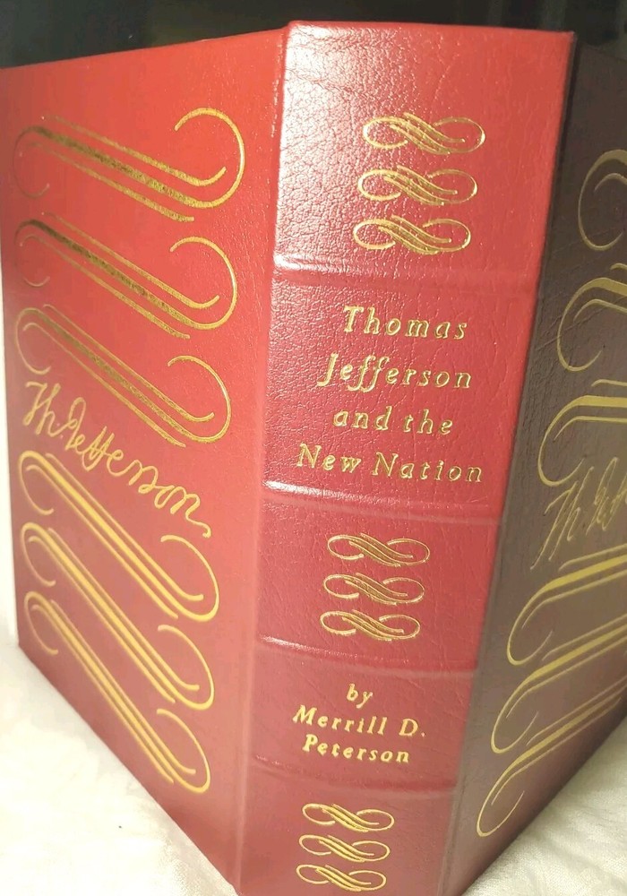 The product is a collector's edition book titled "THOMAS JEFFERSON & THE NEW NATION 1987 Easton Press Peterson Leather History." It is authored by Thomas Jefferson and published by Easton Press, featuring a leather binding. The book focuses on the history of Thomas Jefferson and his contributions to the new nation, making it a valuable piece for those interested in biography, autobiography, and American history.