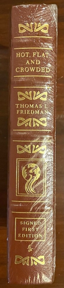 THOMAS L FRIEDMAN - HOT FLAT & CROWDED - EASTON PRESS SEALED FIRST EDITION This is a leather bound signed numbered first edition of Thomas L Friedman’s best seller, ‘Hot, Flat & Crowded”. The book is new, unopened, sealed in Easton Press' original shrink wrap. Signed by the author on the limitation page, it also includes the signed and dated certificate of authenticity, and the publisher's note card. This is a signed copy with all the extras sealed inside. Easton Press books are the golden standard in the publishing industry, highly collectible and lasting generations. Easton Press Full Genuine Leather Dubbed Spine Accented Wit 22 kt. Real Gold Satin Ribbon Page Marker Distinctive Cover Design Gilded Page Edges To Protect Against Humidity High Quality Acid - Free paper Smyth-Sewn Pages Silk-Moire Endleaves