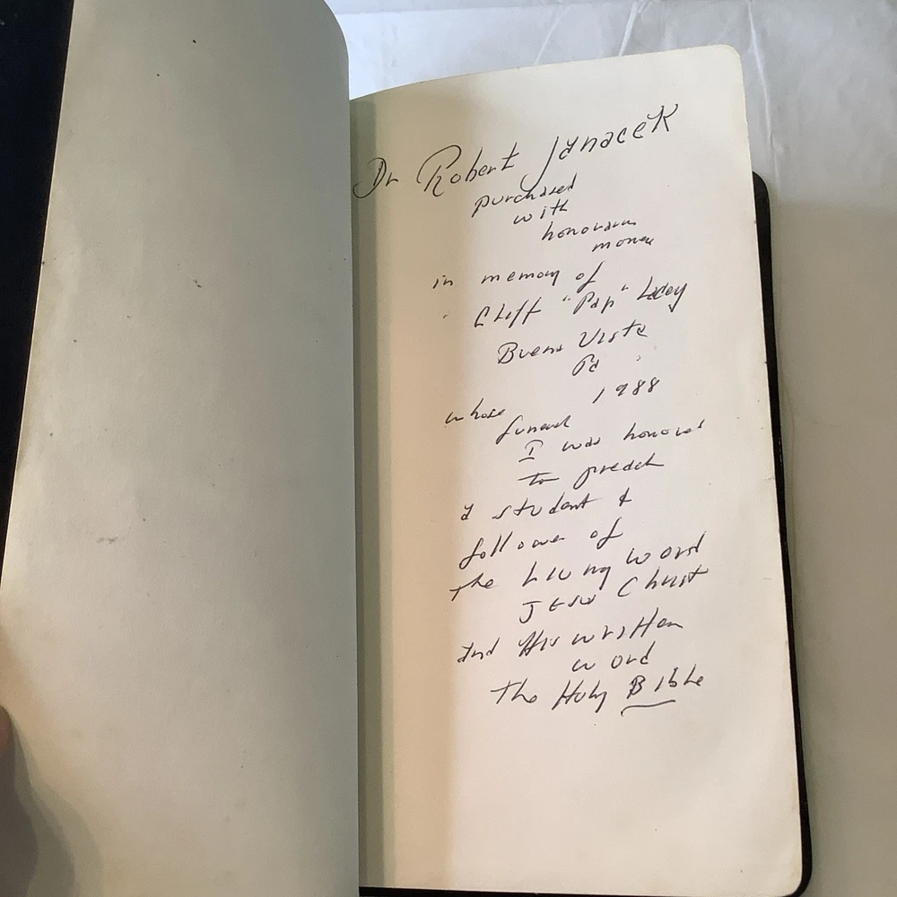 It has some writing inside and shows some age and wear. It’s still a nice Bible. It has a picture of the Dead Sea scrolls in the back....