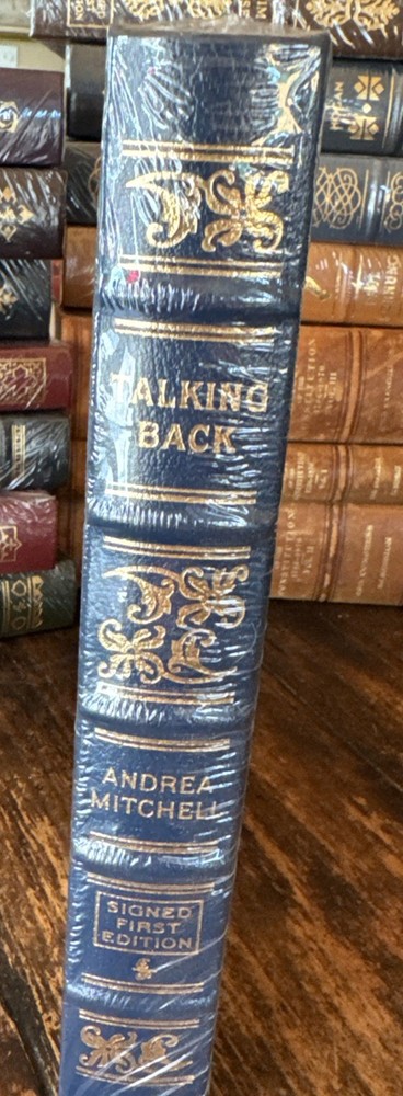 Talking Back by Andrea Mitchell Signed Easton Press 1st Edition 1st Printing. SEALED Book is brand new -Hardcover dark blue leather with gold gilded page edges and decorative details -gold gilt titling to the spine with 5 raised bands , both boards have gold gilt detailing. Sealed unread book Please see pictures- We have hundreds of books listed and combine shipping on multiple purchases whenever possible ( K)