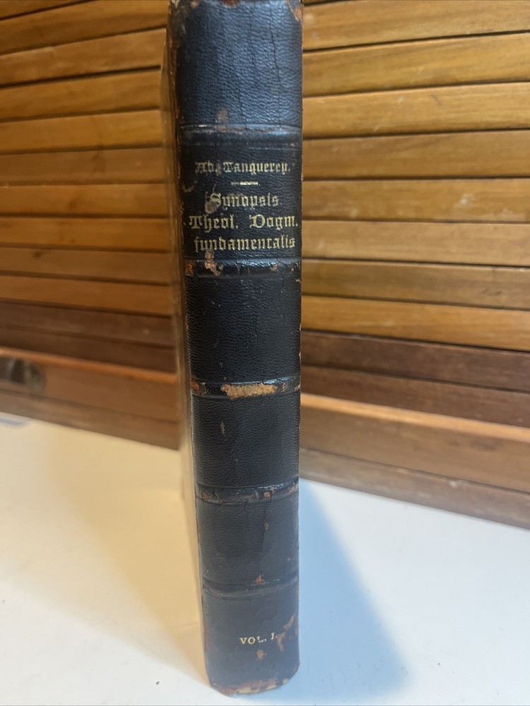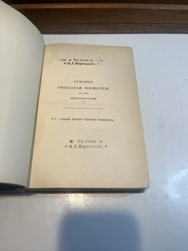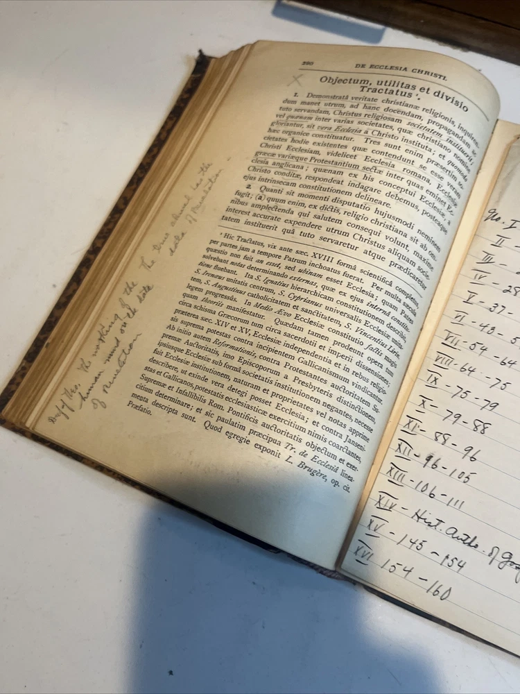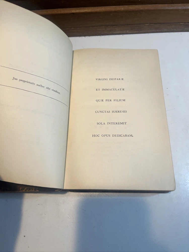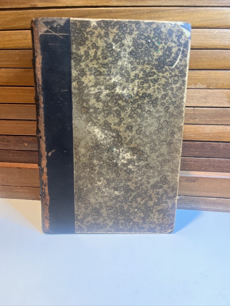 looks to be in latin. Outside cover is in rough shape, inside pages much better but they do have pencil notes in them. Previous owners names scribbled on inside.Very rare book none the less. see photos for full condition. Condition 5.5/10 Antique book box 6: 13