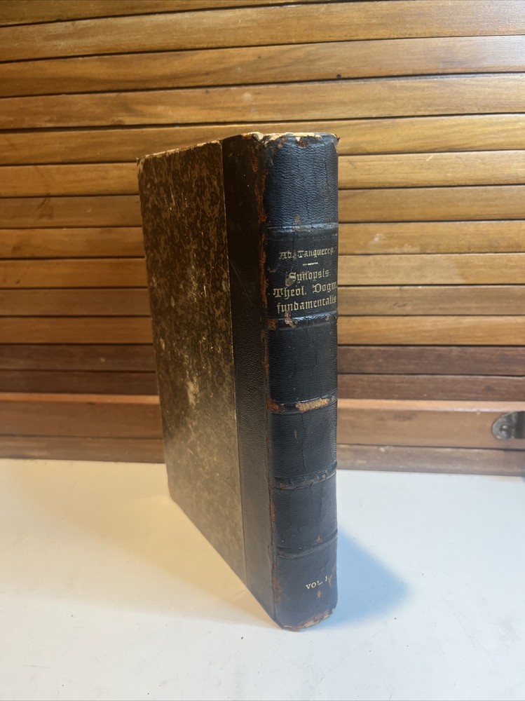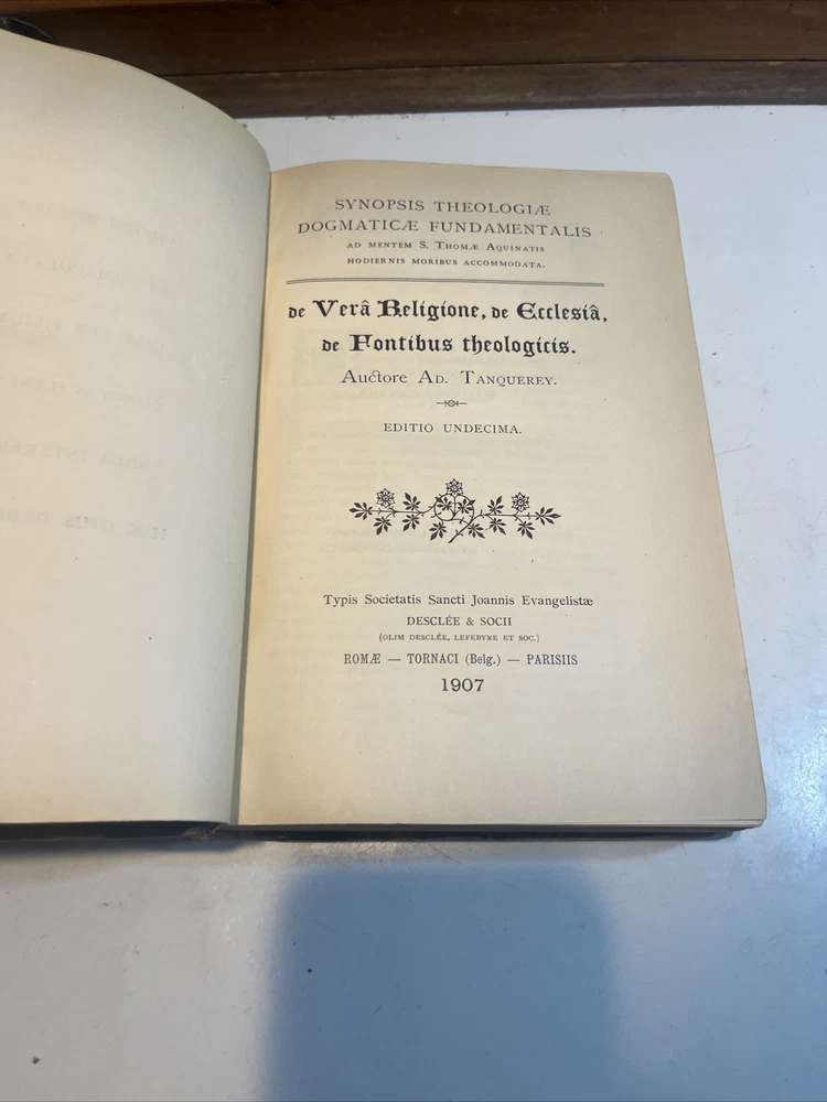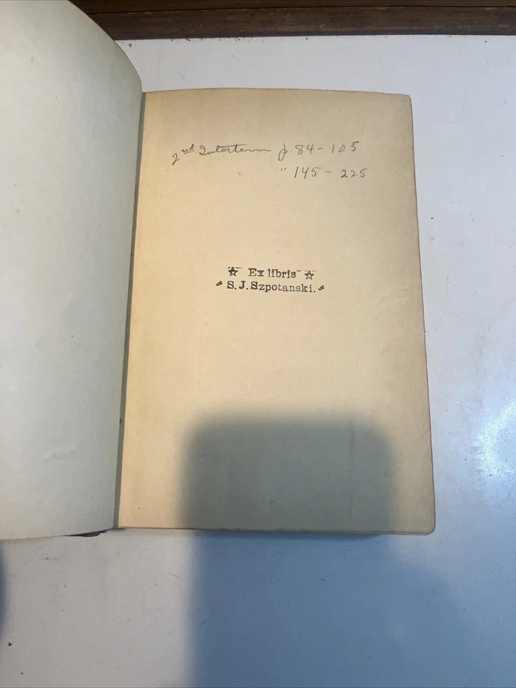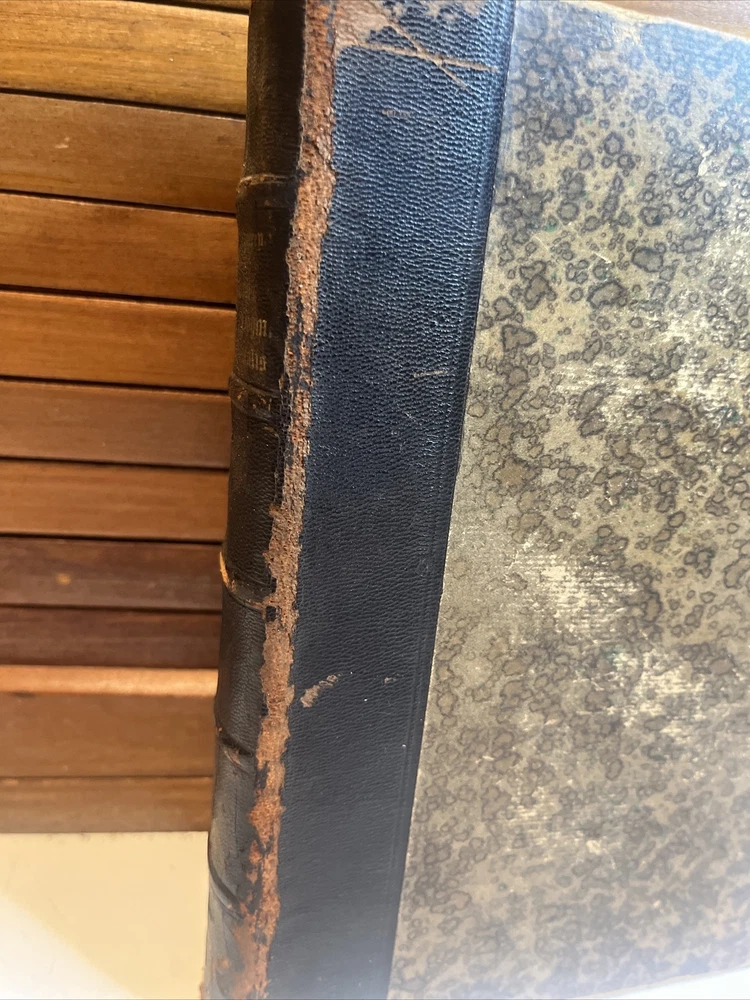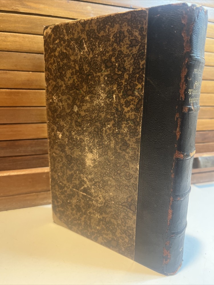 looks to be in latin. Outside cover is in rough shape, inside pages much better but they do have pencil notes in them. Previous owners names scribbled on inside.Very rare book none the less. see photos for full condition. Condition 5.5/10 Antique book box 6: 13