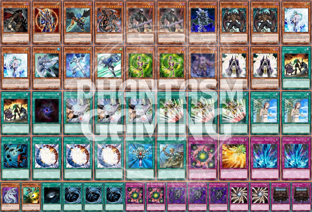Deck Name: TeleDaD (B) (Wind-Up) # Main Deck (40) 1 - Armageddon Knight 1 - Black Luster Soldier - Envoy of the Beginning 1 - Blackwing - Zephyros the Elite 1 - Dark Armed Dragon 2 - Dark Grepher 1 - Destiny HERO - Diamond Dude 2 - Destiny HERO - Malicious 2 - Effect Veiler 1 - Elemental HERO Bubbleman 1 - Elemental HERO Neos Alius 1 - Elemental HERO Stratos 2 - Krebons 1 - Plaguespreader Zombie 2 - Summoner Monk 2 - A Hero Lives 1 - Allure of Darkness 3 - Destiny Draw 3 - Emergency Teleport 2 - Forbidden Lance 1 - Heavy Storm 3 - Miracle Fusion 1 - Monster Reborn 1 - Reinforcement of the Army 1 - Deck Devastation Virus 1 - Phoenix Wing Wind Blast 2 - Torrential Tribute # Side Deck (15) 1 - Cyber Dragon 1 - Swift Scarecrow 1 - Dark Hole 3 - Mystical Space Typhoon 2 - Deck Devastation Virus 3 - Eradicator Epidemic Virus 2 - Light-Imprisoning Mirror 2 - Royal Decree You will receive all of the following cards listed above. Most cards will will be in near mint condition. In the case of certain older cards we will do our best but some cards may be light or even moderatly played in extreme condtions. Those conditions being the card has not been reprinted in a number of years and con no longer be easily purchased in light or near mint condition. Set, Rarity, and Edition will vary and cannot be special requested. These lists are constructed with least expensive rarities we have available in stock. All cards are play legal copies. Note: If purchasing a Yugioh Deck all Speed duel cards are 100% legal at all levels of play. Store Policies Here at PMG_LLC , we pride ourselves on having the best customer service around. If you have any questions or can't seem to find something that you want please do not hesitate to contact us. We will do our best to respond to all questions within one business day. Hours of Operation: Monday-Friday: 2:30pm - 10:00pm Saturday- 10:00am - 8:00pm Sunday 11:00am - 5:30pm Note: We are closed all national holidays. Info: Thank you for choosing PMG_LLC . We appreciate your business. We ship Monday through Friday to make sure you get your deck as quickly as possible. All orders priority orders can use combined shipping. In order to use the combined shipping your whole purchase needs to be checked out as one order. We ship once we have received your payment and payment has cleared. As always if you have any questions or concerns please feel free to contact us via email. Shipping Information: We ship Monday through Friday, barring national holidays during which the United States Postal Service is closed. If you purchase a card on Friday or Saturday please bear in mind it will not ship until Monday. US Shipping: First Class Mail : Free. Comes with tracking information. Priority Mail with Delivery Confirmation : $9.99 All orders are shipped in appropriate protective material inside bubble mailers. International Shipping: We do not offer international Shipping Return Policy: You must return items sold and fulfilled by PMG_LLC within 30 days of delivery to be eligible for a refund. Returns which are damaged in the mail due to improper return packaging will receive partial refunds. We will process a full refund for all items returned in their original condition. In order for us to process your full refund you must include the full name associated with the order as well as the eBay order number inside the return packaging. We will not process returns which do not include the buyer's name and order number. Requirements: Please return items with the original plastic packaging. Failure to do so may result in a partial refund. Also you must inform us of any returns you may wish to process before sending them back. Any items simply send back to us without prior contact will not be eligible for refunds. Important Notes Remember that to benefit from our domestic combined shipping on priority orders you must to pay in a single payment. If you place two separate priority orders you will be charged the $7.50 shipping fee for both orders. If you place multiple orders for Priority shipping you will be charged the corresponding shipping costs for each order, even if you place the orders on the same day. We do not refund shipping costs as we tend to package orders throughout the day and may not notice that you would otherwise have qualified for combined shipping. We want to provide you with 5 Star service and earn your Positive Feedback, so if for any reason you are not happy with your transaction, contact us before leaving feedback. Business Day - Our business day runs from Monday to Friday from 9am to 4pm, excluding US national holidays. Any orders placed or payments cleared less than 4 hours before the close of business will be considered orders from the following business day.