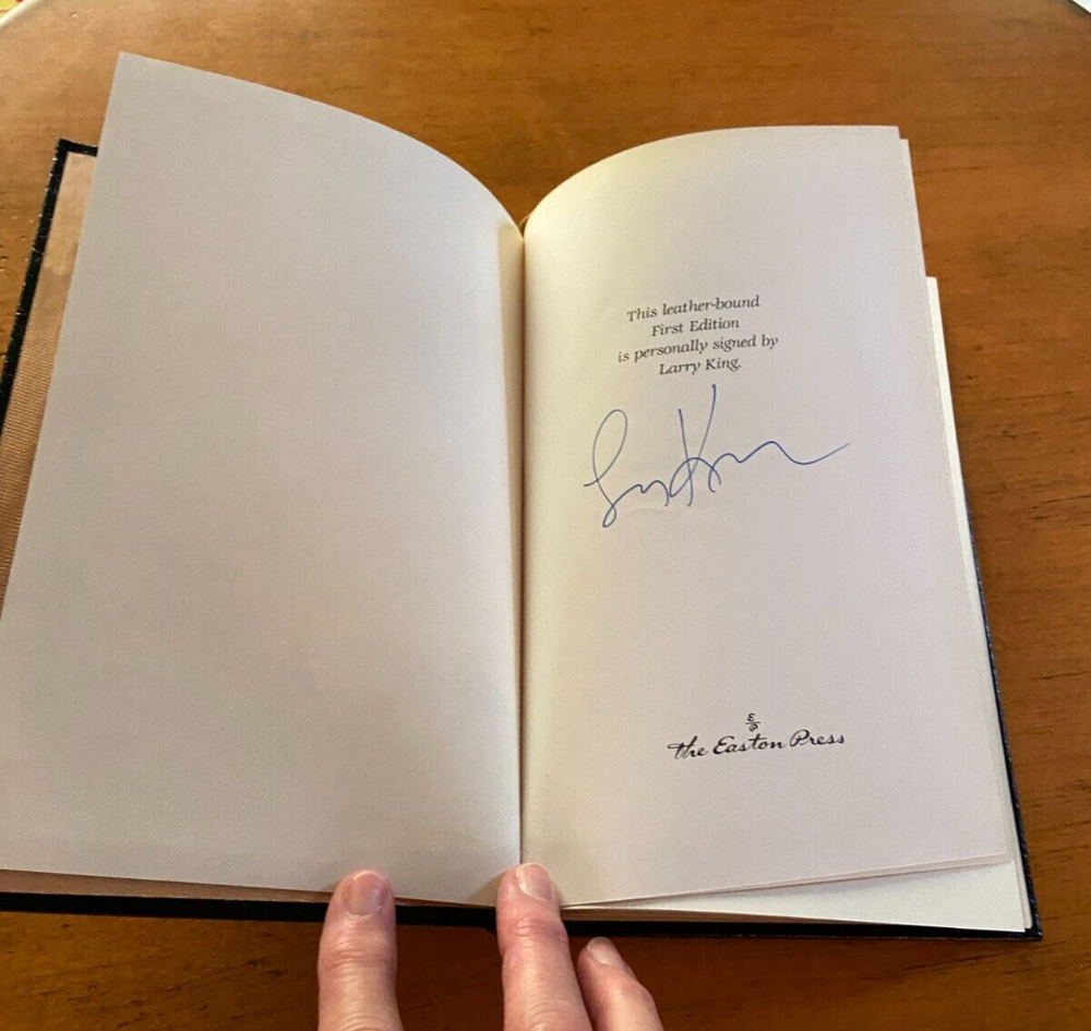 This fine leather bound book with gold accents is Fist Edition of Easton Press signed personally by Larry King. Larry King tells stories about people he has met over the course of his career. A great gift for someone in the entertainment industry or just a fan of Larry King and his storytelling.
