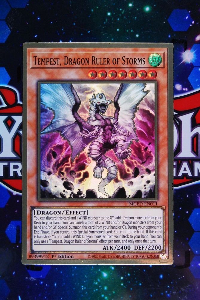 Card: Tempest Dragon Ruler of Storms x 2 Set Number: MGED-EN011 Set: Maximum Gold: El Dorado Year: 2021 Edition: 1st Edition Rarity: Premium Gold Rare Condition Report: NM.