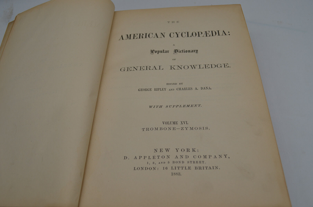 You are bidding on a The American CYCLOPEDIA AUTHENTIC 1883 VOL XVI TRO-ZYM. In good condition for the age. Thanks for looking and please look at My other auctions. I Strive to offer quality products at a great price. Fast Shipping –Same day or next day after payment is received. Gladly combine shipping at no additional cost if multiple items can ship together in one box. I ship the most efficient and economical way possible ********** My goal is to maintain a 5 star rating***** If you feel you will be unable to give me a 5 star rating for any reason please contact me before giving me a feedback or star rating! Thanks