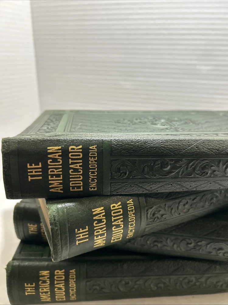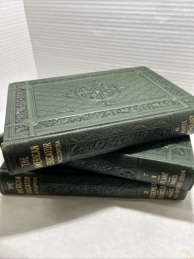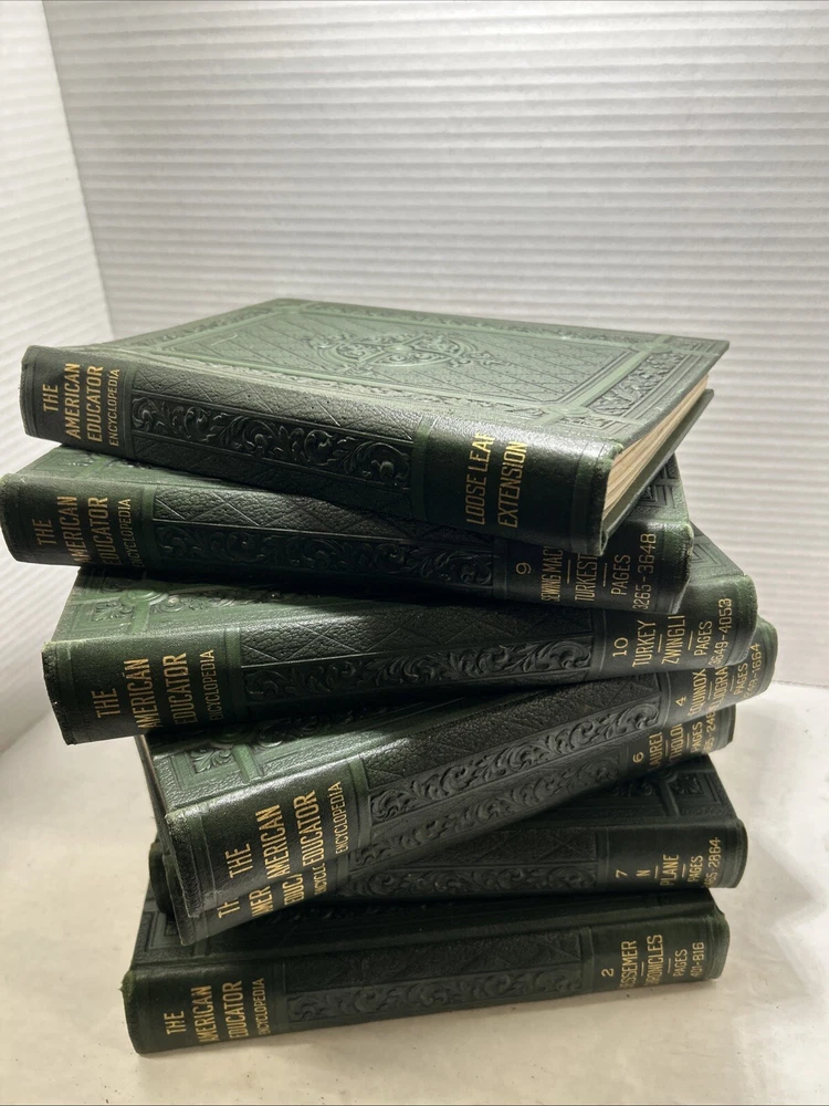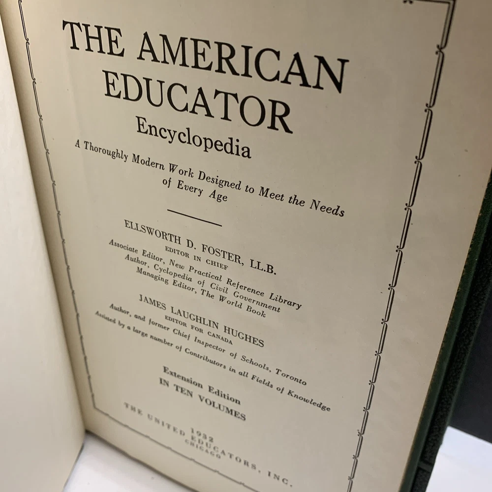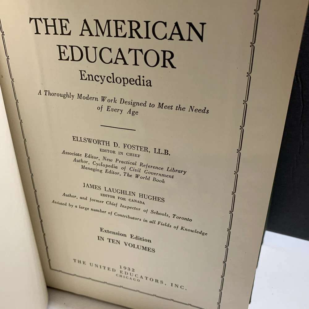This is a unique opportunity to own a piece of American educational history. The American Educator Encyclopedia Books 2,4, 6, 7, 9, and 10 published in 1932 and 1933 by The United Educators, Inc., is a valuable addition to any collection. This original, tooled leather bound book is illustrated and numbered, making it a special item for any reference or encyclopedia enthusiast. Included in this lot is a loose leaf extension with issues from 1933, 1934, and 1935. The books are written in English and covers a range of topics, from mathematics to history. They were printed in the United States and is an excellent representation of North American education in the early 20th century. These book are a must-have for anyone interested in the history of education or who wants to add a unique piece to their collection. Please look carefully at the photos as they are part of the description and ask any questions prior to purchase. Items used for display are not a part of the sale.