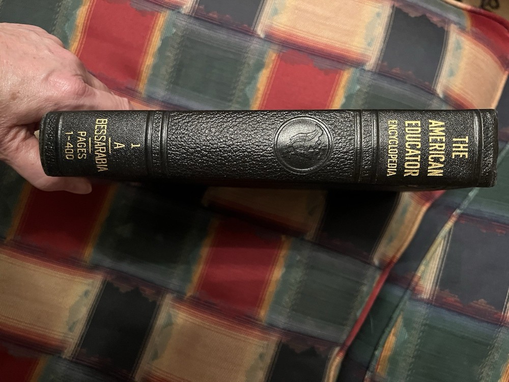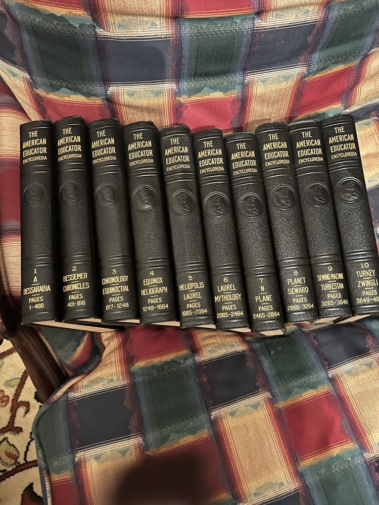 The American Educator Encyclopedia Complete Set is a valuable reference collection published in 1940 by The United Educators, Inc. This 10-volume set features articles written by various editors and covers a wide range of topics related to education in North America. The embossed leather binding adds a touch of elegance to this comprehensive encyclopedia, making it a desirable addition to any collector's library. Excellent condition!!
