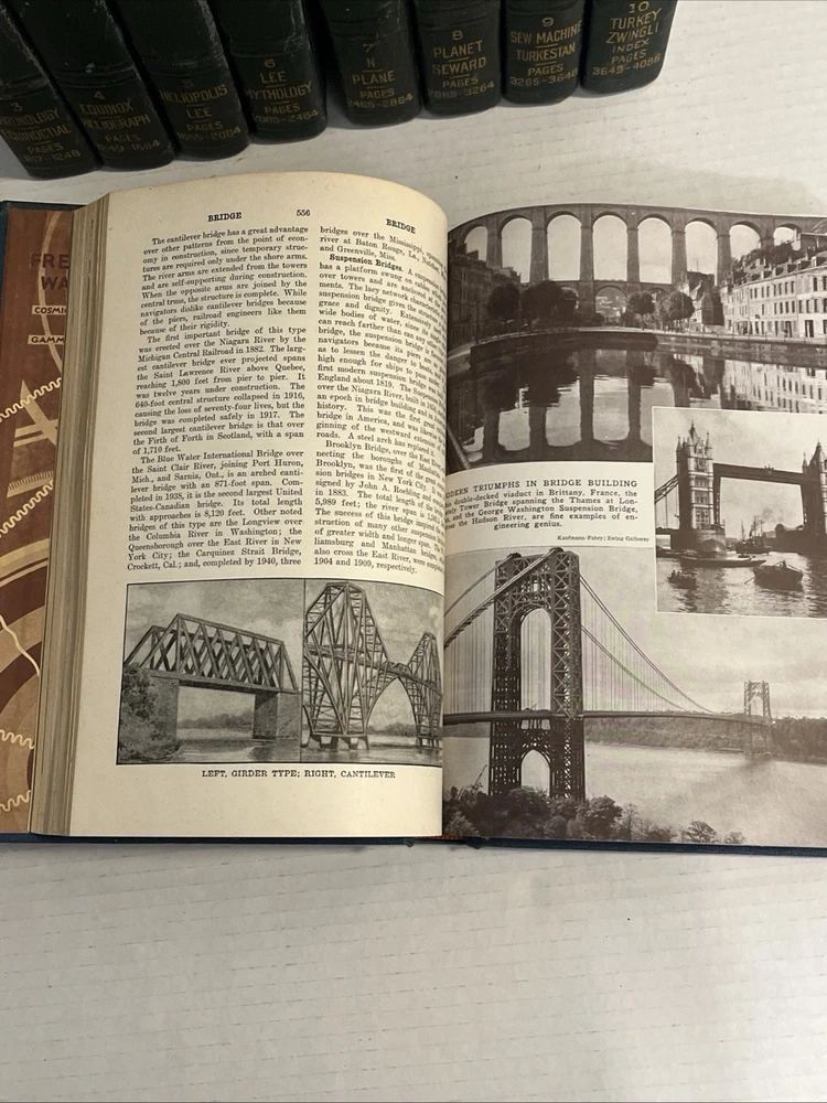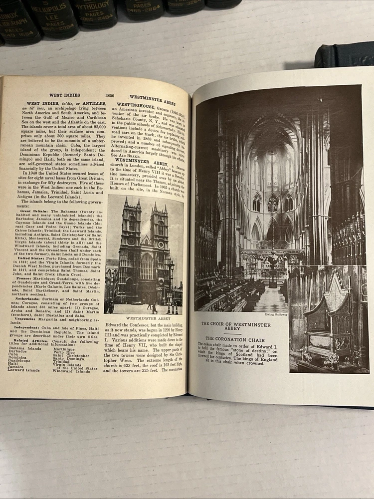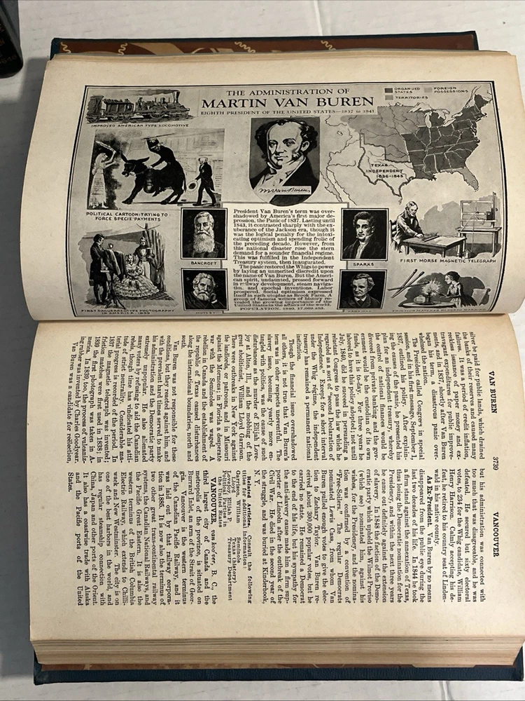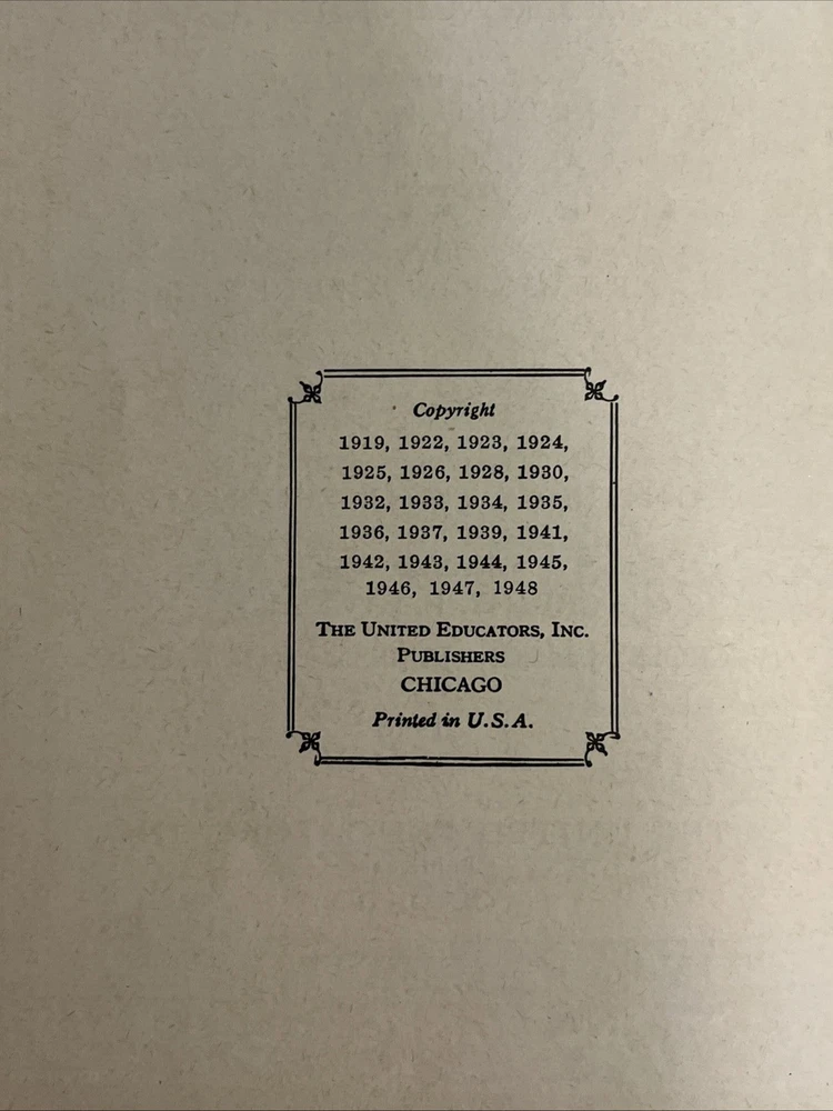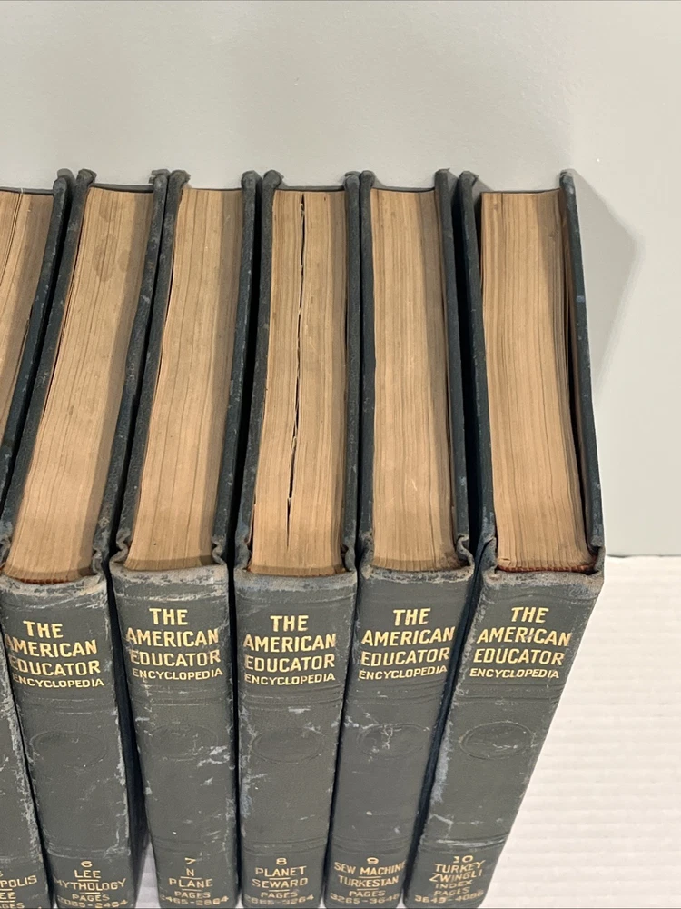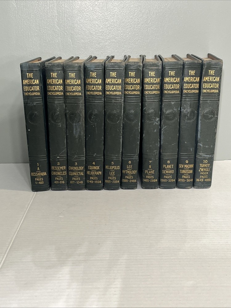The American Educator Encyclopedia is a complete set of 10 volumes published by The United Educators, Inc. in 1948. The encyclopedias are bound in tooled leather with an embossed dark blue cover. The editors of the encyclopedia are the authors of this reference book. The book is written in English and is an original copy printed in the United States.
