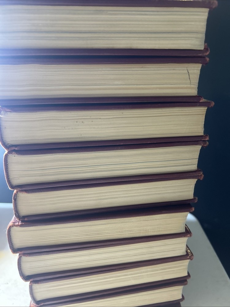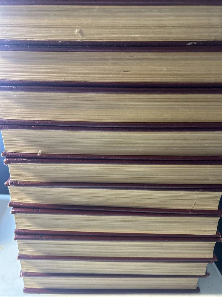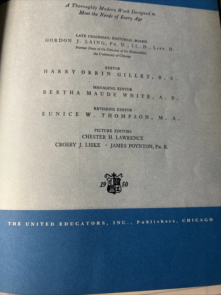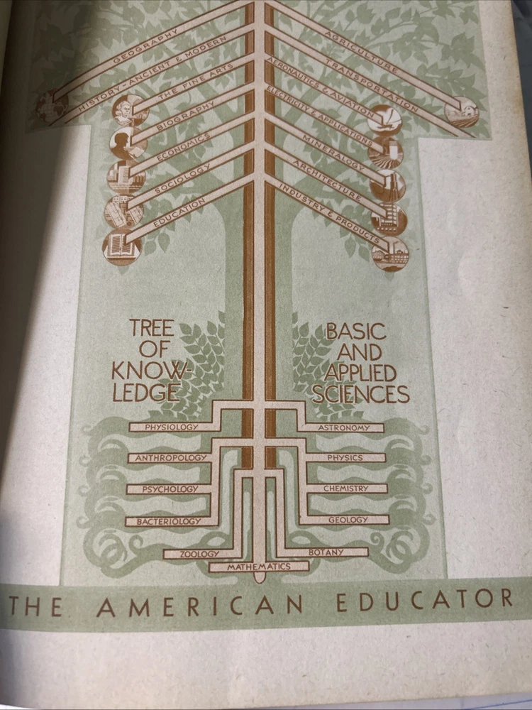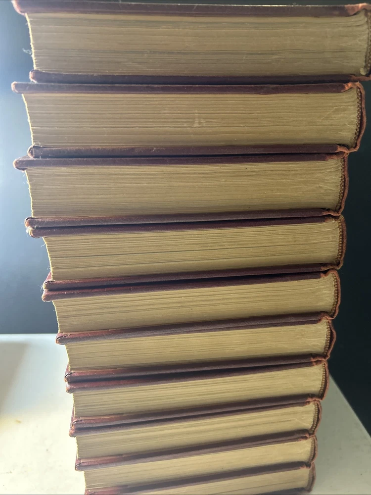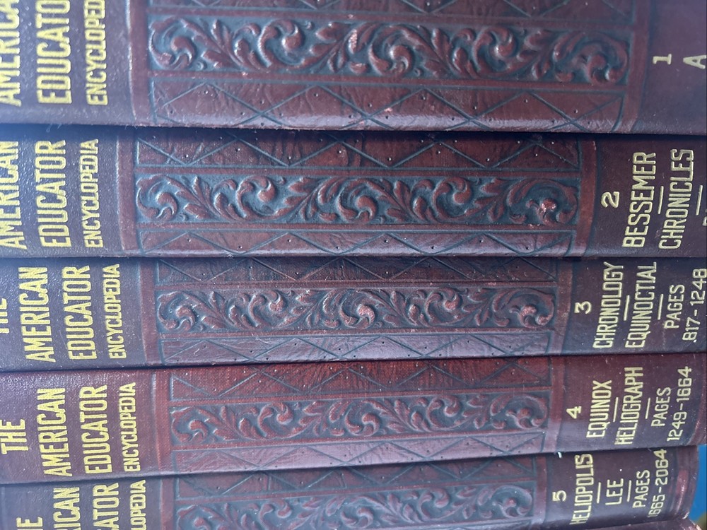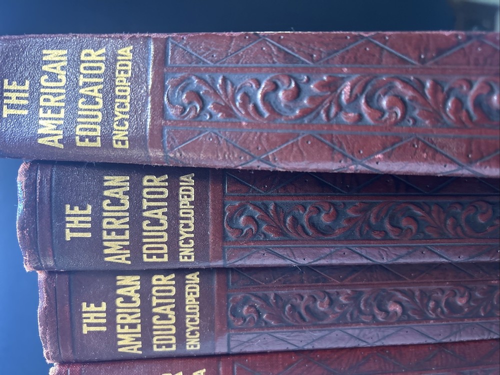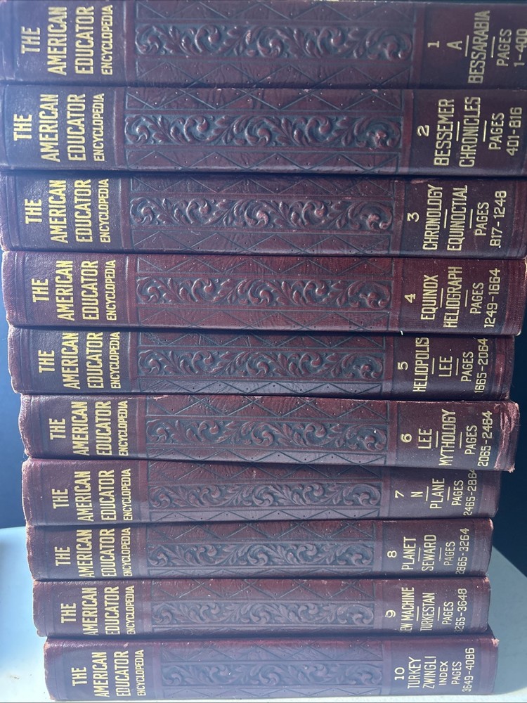 Beautiful set. The American Educator Encyclopedia Embossed Leather Bound Set of 10 1950 is a valuable collection of knowledge that would make a great addition to any library. The set is beautifully bound in leather and includes numerous illustrations, making it an attractive and useful resource for anyone looking for information on a wide range of topics. The encyclopedia is a reference book that would be useful for researchers, students, and anyone seeking to expand their knowledge base.