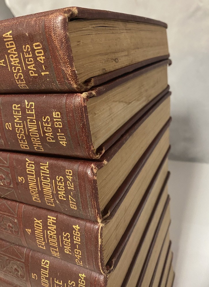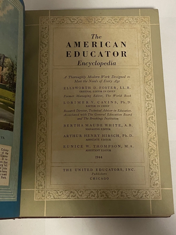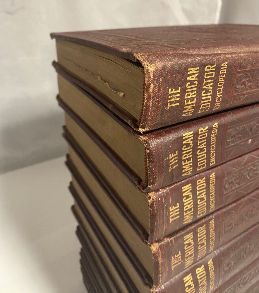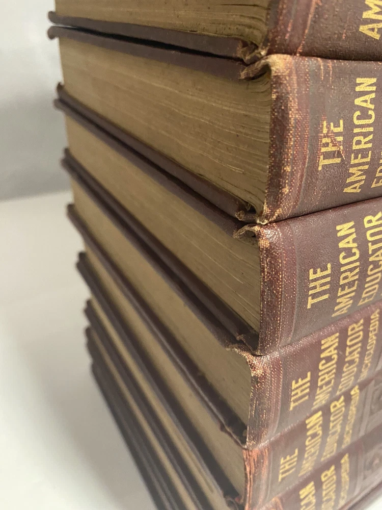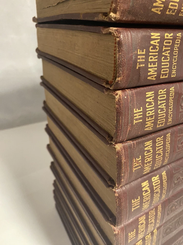 American Educator Encyclopedia Volume 1-10 1944 Please see photos for condition. These are acceptable. There is some loosening of binding, specifically in volume 1, wear to spines, and occasional writing.