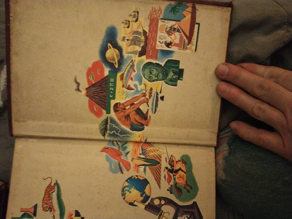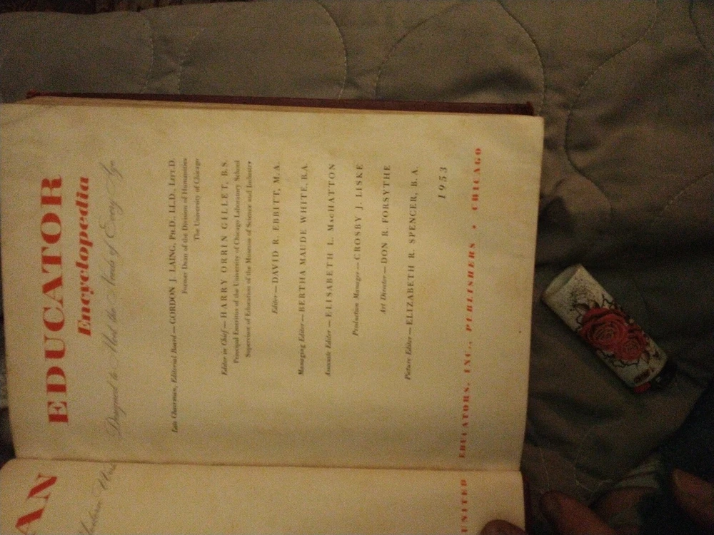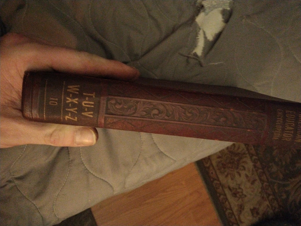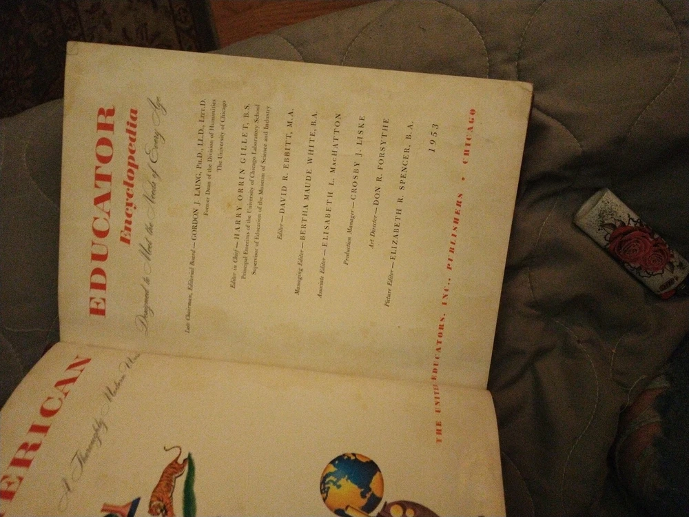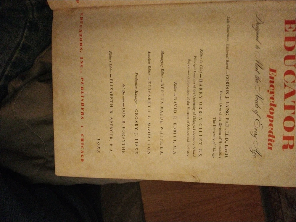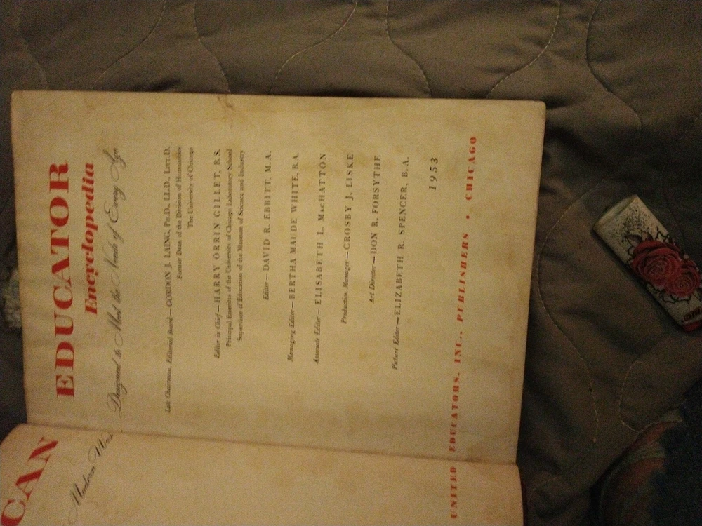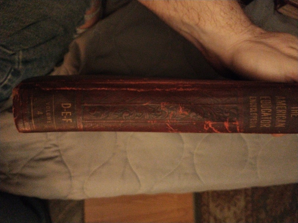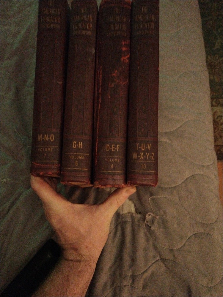 The product is "The American Educator Encyclopedia" consisting of volumes 4, 5, 7, and 10, published in 1953 by The United Educators, Inc. These leather-bound books are written in English and contain illustrations. The encyclopedia covers a wide range of topics and serves as a valuable reference resource. It is an original publication from the United States, making it a collectible item for those interested in vintage educational materials.