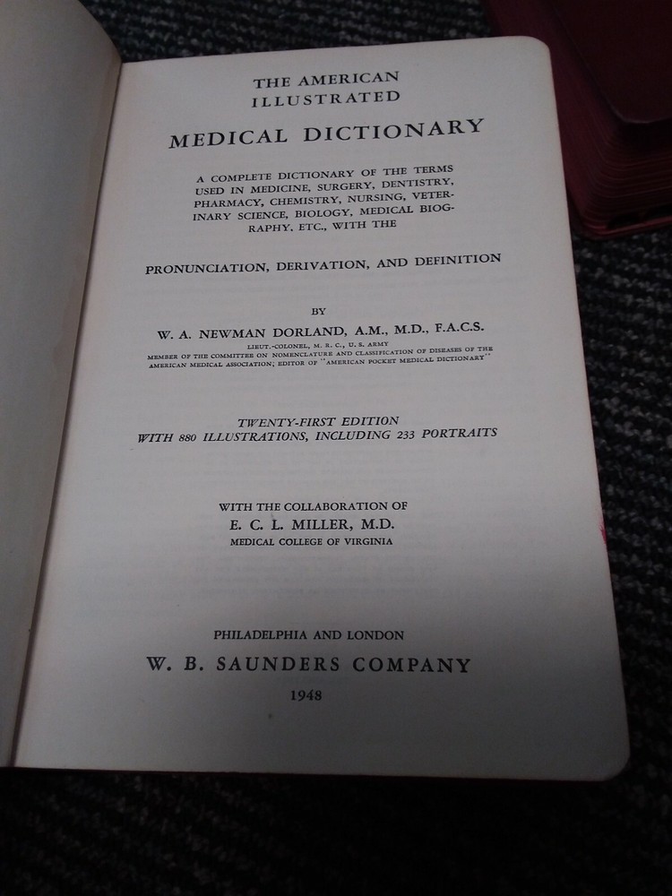 The American Illustrated Medical Dictionary by Dorland 21 & 22nd Editions. Very nice condition. See pictures.Shipped with USPS Media Mail. 131K2