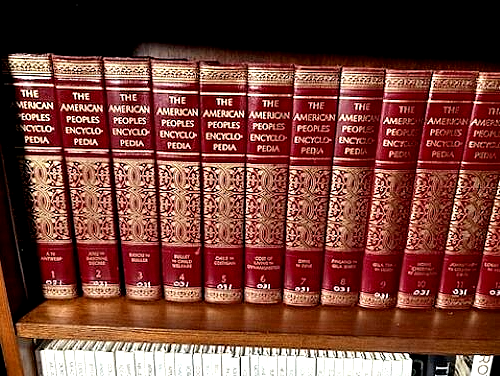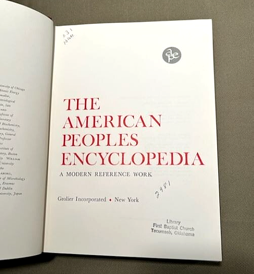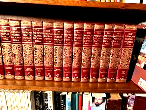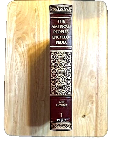 This American Peoples Encyclopedia A Modern Reference Work, which contains the complete 20 volumes, was published by Grolier Incorporated New York in 1965. The editors have ensured the accuracy and authenticity of the content in their fields of concentration. The volumes measure 10 inches in height by 7 inches length, with varying widths, and are bound in red leather with gold lettering. The volumes possess both black and white as well as color illustrations, with some volumes possessing colored transparency inserts. The 20-volume set was acquired from a Church library and possesses a number on the spine as well as a library stamp and numbers on the cover page, and a library card insert on the inside of the back cover. No other marking are apparent. The volumes are in excellent condition and appear to be used little. No tears or creases are visible. The encyclopedia set will be shipped upon verification of payment with U.S. buyer paying actual shipping charges for a 61 pounds 10 ounce package from Zip Code 74804. Thanks for looking and please email any questions that you may have!