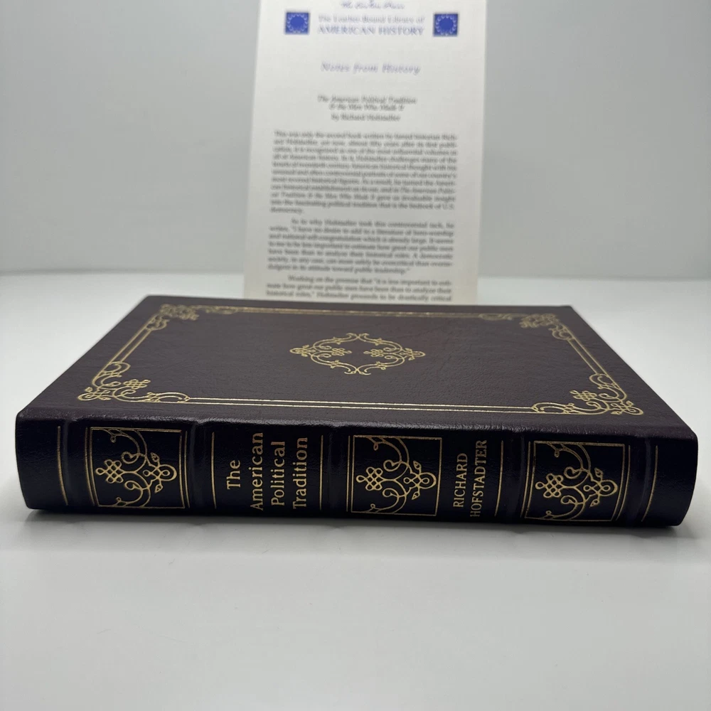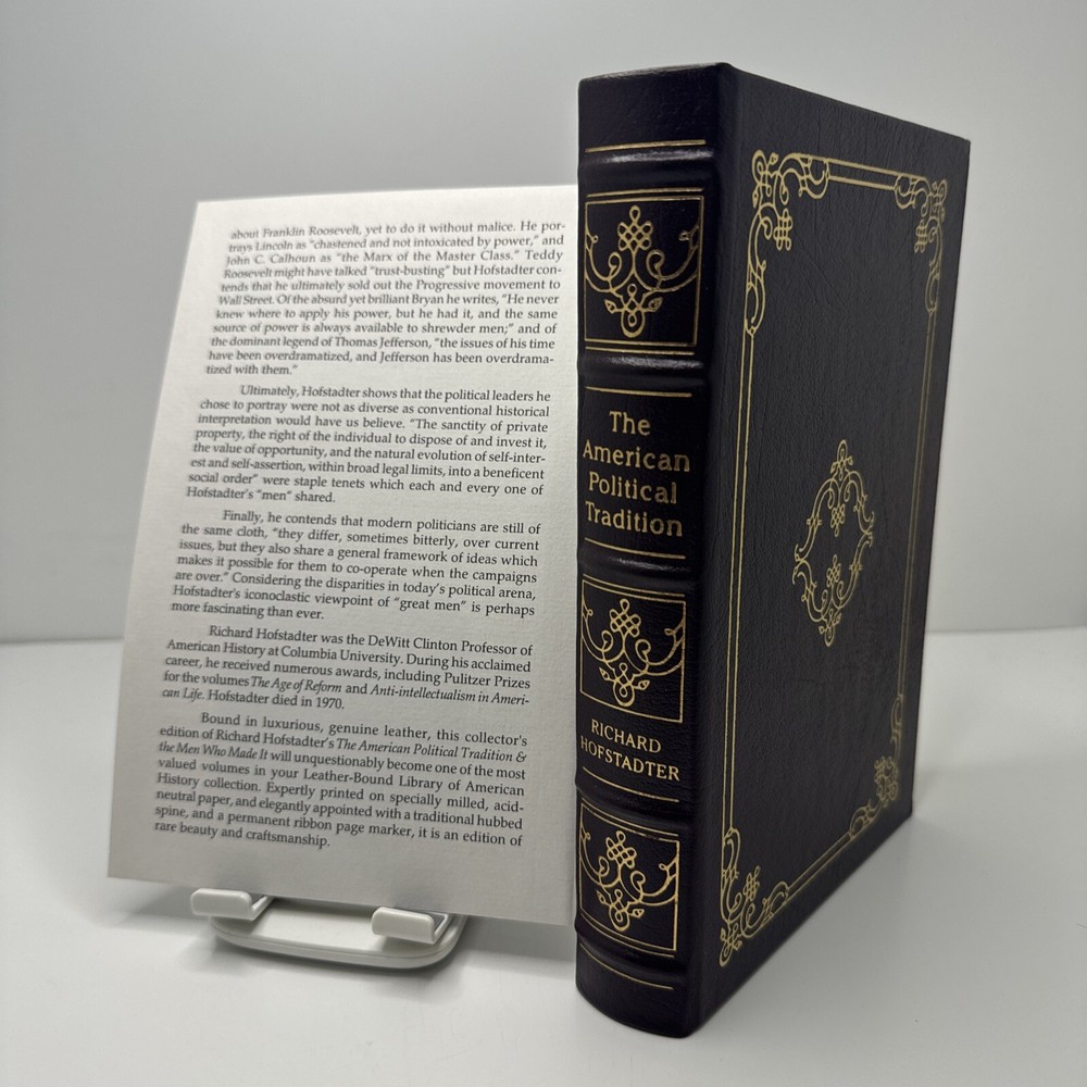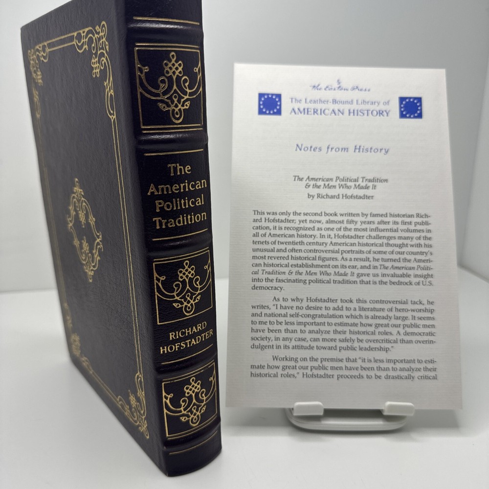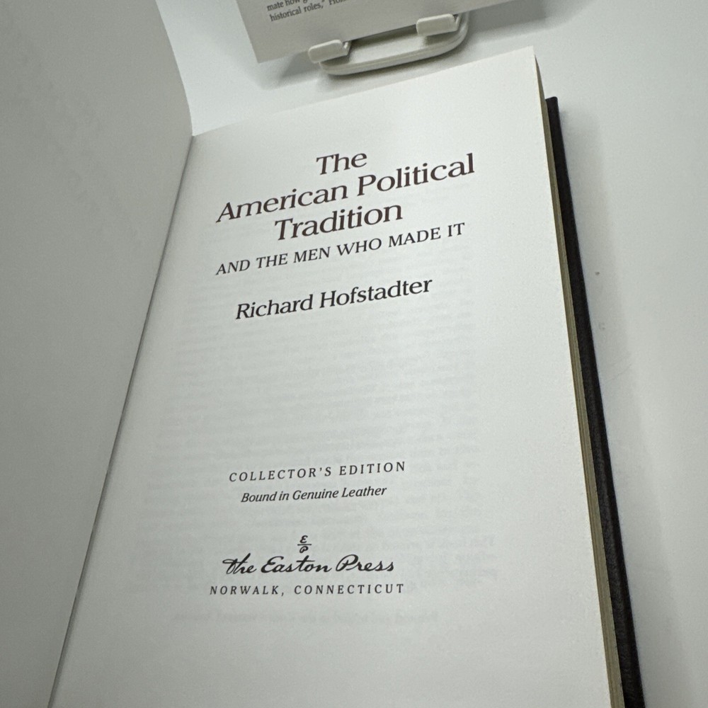 This collector's edition of "The American Political Tradition" by Richard Hofstadter is a must-have for any political enthusiast. Printed in 1995 by Easton Press in Norwalk, Connecticut, this original edition is a rare find. The leather binding adds a touch of elegance to the book, making it a perfect addition to any collection. The book explores the history of American politics and the impact of various political figures on the country's destiny. It is a fascinating read for anyone interested in the subject, and it is sure to be a prized possession for years to come. This edition is not personalized and has no special attributes, but it is a great addition to any collection of political books.