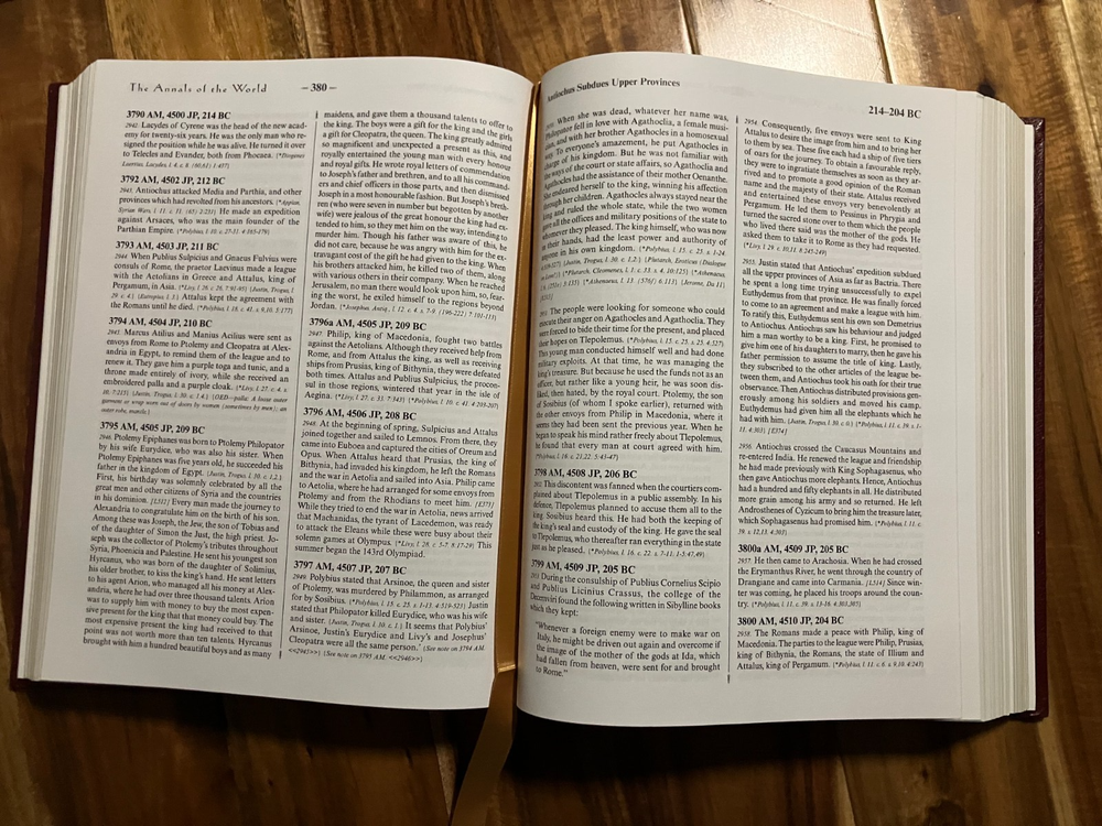 Explore an unparalleled academic chronology of both sacred and secular history in James Ussher’s literary classic, Annals of the World . Ussher is one of history’s most famous and well-respected historians who wholly devoted himself to the defense of the Christian faith. Dive into his encyclopedia of ancient world history from beginning-of-time to 70 A.D. and discover true accounts of the people and events that shaped the world and contributed to the rise and fall of nations and ancient civilizations.