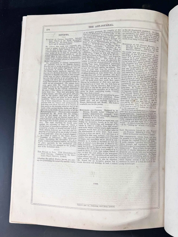 Description : The Art Journal 1867, New Series Vol VI, half calf on green textured boards, raised bands, stamped gilt titles on spine, marbled end papers. Bindery by George Evans. Published Virtue & Co., London. Engraved illustrations. Various artists and engravers. 6lbs Measures Approx.: 10 x 13.25 x 1.5 inches Condition: Good condition, covers discolored, wear at joints and edges, slight lifting at joint at the front bottom. Some toning and spotting, mostly to front pages. PHB1667 We have a fine selection of quality items for sale at Amphora Art & Antiques. International as well as domestic customers are welcome - please contact us with questions regarding shipping or listings, and we will assist you quickly. All items can be inspected in-person or are available for pickup from our large Wilmington, CA warehouse with no additional fee or charge. The authenticity of all items listed are guaranteed to be as represented - all efforts are taken to ensure accurate and descriptive condition reports and photographs. We reserve the right to use another shipping carrier other than what is listed to ensure your purchase arrives safely. Fedex cannot ship to a P.O. Box. Please contact us before or upon purchase if you have a preferred shipping carrier.