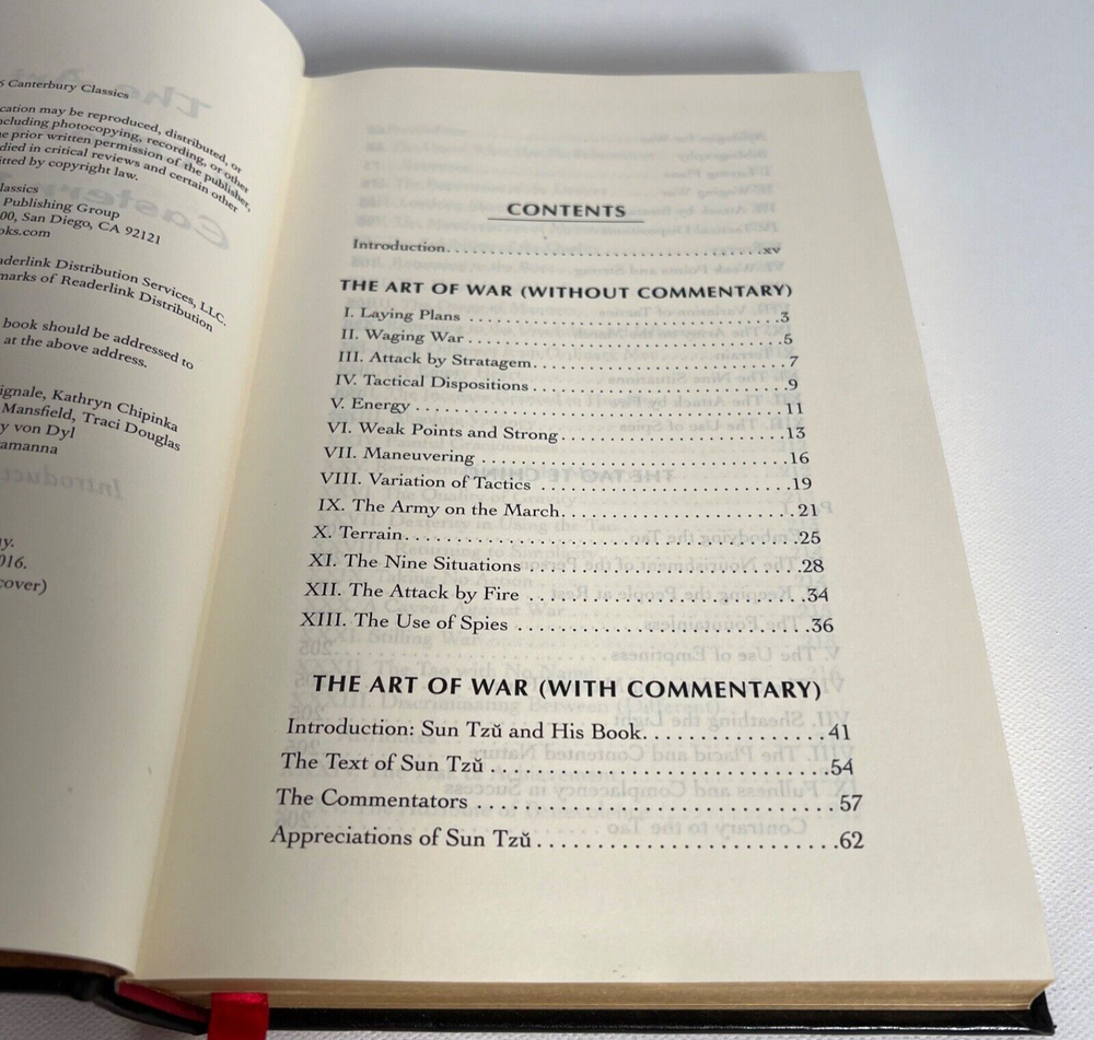 The Art of War and Other Classics of Eastern Philosophy: Canterbury Classics Leather-Bound This hardcover, leather-bound book is part of the Book Series - Leather-Bound Canterbury Classics Series. Contains Gilt edges. Sewn-in Satin page marker. Pictorial endpapers. Published by Printers Row Publishing Group in English. The words of the ancient Chinese sages are as timeless as they are wise and have influenced other thinkers across the world for more than 2,000 years, and they continue to shape our ideas today. IBPA Benjamin Franklin Gold Award Winner 2017. Condition: Pre-owned in very good condition - looks new. See Photos. Clean, No writing or highlighting. Binding is intact and tight. Shipped from a smoke-free environment. The book will be protected in sealed plastic, wrapped in bubble wrap and shipped in a cardboard box.