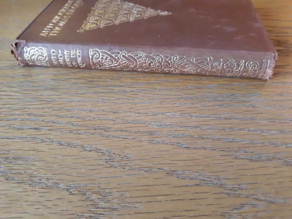 The Autobiography & Confessions Of Thomas De Quincey George Newnes Leather There is some wear to the cover. The book has wear on the corners. There may be some marks in or on the book. Books are stored on a bookshelf in A/C. They are in a dark room and are well maintained. If you have any questions or concerns about this book please contact me. Listing and template services provided by inkFrog