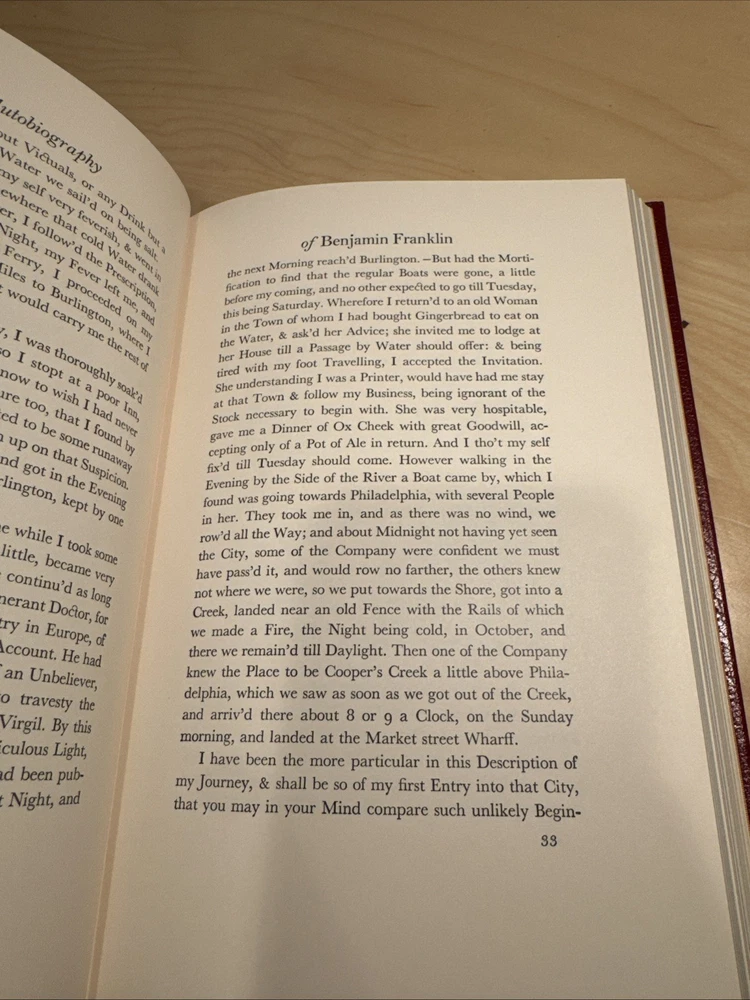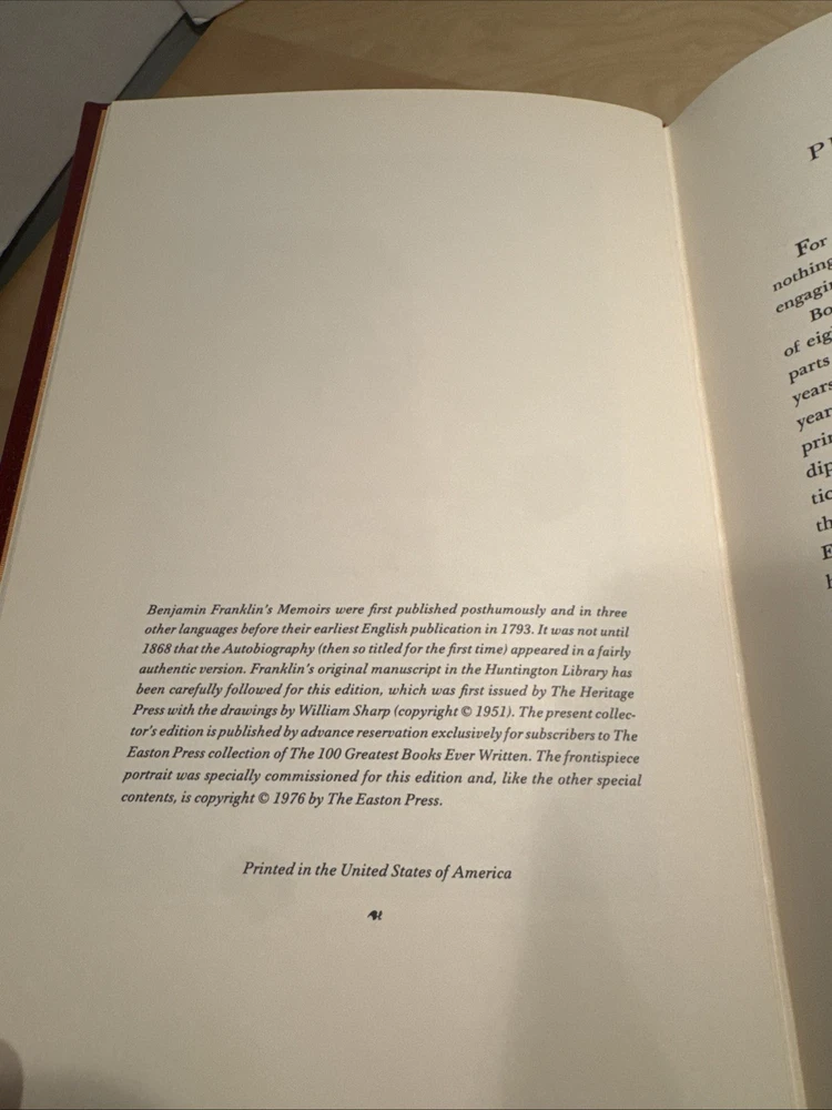 The Autobiography of Benjamin Franklin - 1976 Easton Press 100 greatest books. Condition is Like New. Shipped with USPS Media Mail.