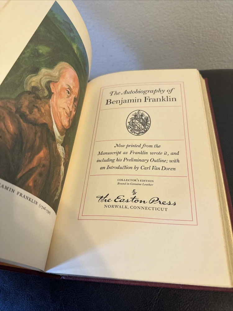 The Autobiography of Benjamin Franklin, 1976 Easton Press, Collector's Edition. Wear and scuffs as pictured.