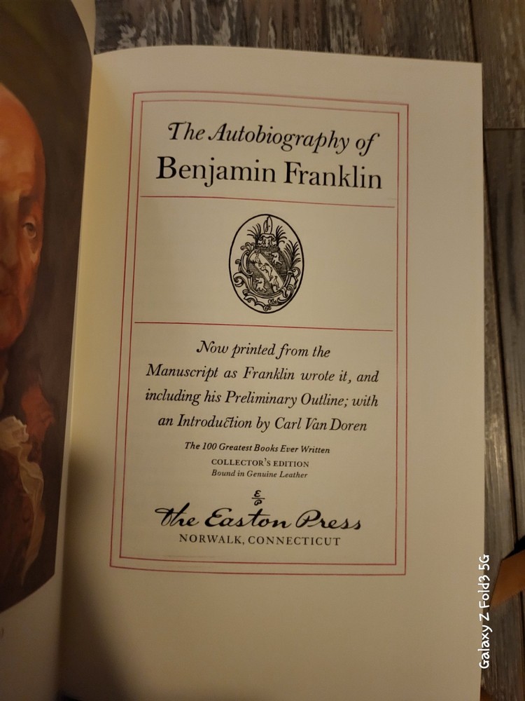 Immerse yourself in the wisdom and wit of one of America's most beloved Founding Fathers with "The Autobiography of Benjamin Franklin," presented in an exquisite leather-bound collector's edition by Easton Press. This timeless piece not only showcases the remarkable life of Benjamin Franklin but also serves as a testament to the enduring values of law and government. Crafted for both the historian and the bibliophile, this edition is a treasure in English literature, offering a glimpse into the historical context of the Revolutionary era. Whether you're expanding your collection or seeking a distinguished piece to gift, this collector's edition is a celebration of historical reflection and literary artistry.
