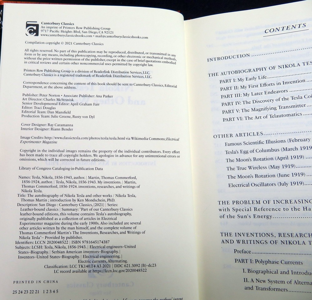 Title: THE AUTOBIOGRAPHY OF NIKOLA TESLA And Other Works Author: Nikola Tesla Illustrations: photos, drawings, renderings Published: 2021, Canterbury Classics About: Science, Electronics Physical Description: Metallic copper vinyl over boards with gilt illustrated front, back and spine. Condition Notes: Appears new and unread Pages: 742 Dimensions (inches): 9 x 6 Shipping weight (pounds): 4 SKU: 6906 Powered by SixBit's eCommerce Solution