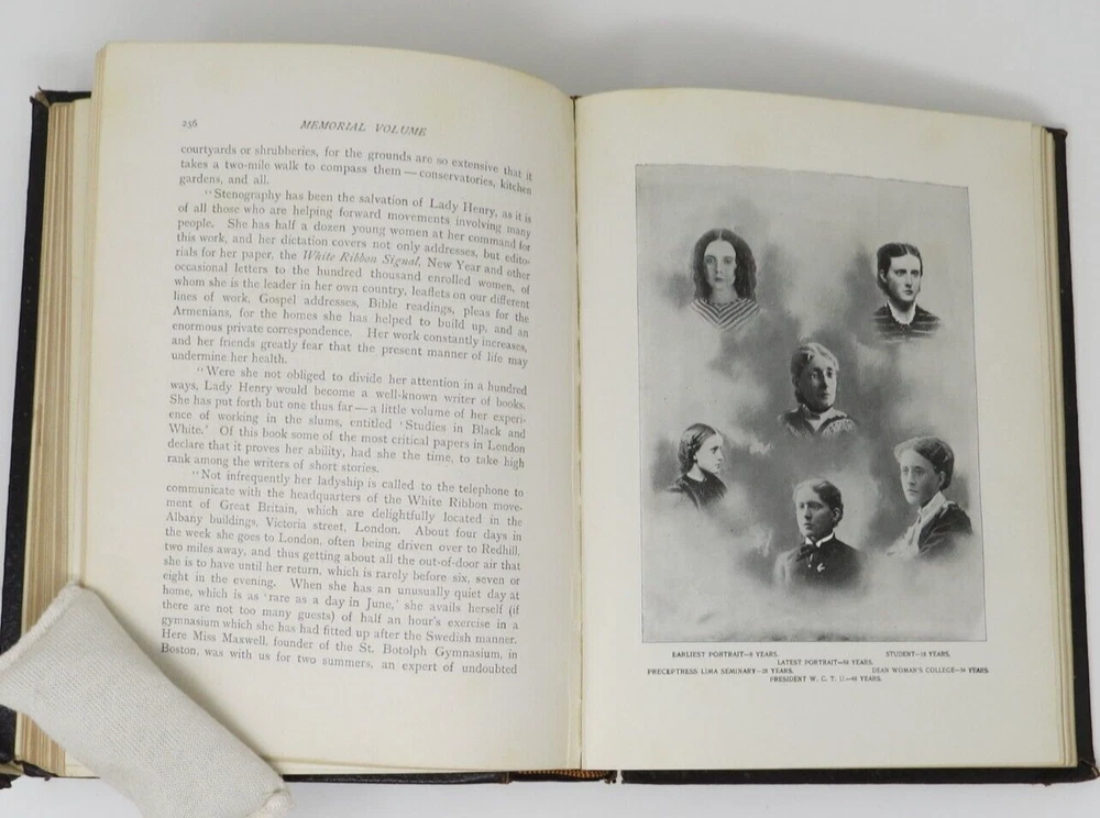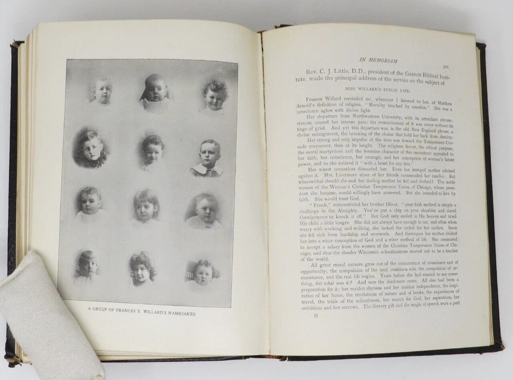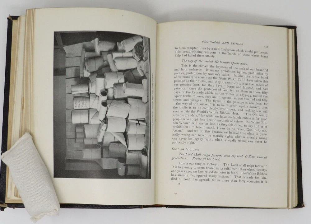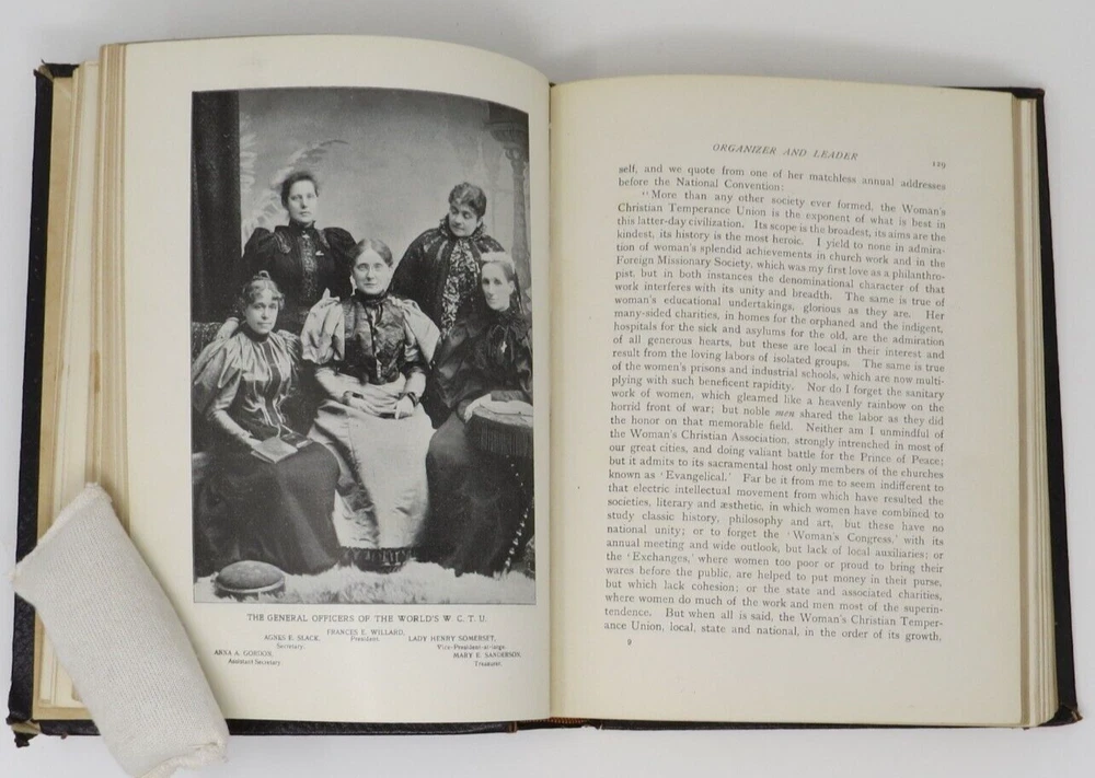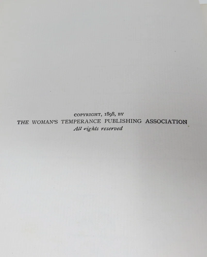 Chicago: Woman’s Temperance Publishing Association, 1898. First Edition. Blind-embossed full leather with gilt lettering and gilt edges. 7.25 x 9.75 inches. Illustrated with photographs and drawings. Overall clean copy with light edge wear, some corner wearing/rubbing, and tearing to top spine end. Solid binding. First few end papers have light soiling. Frontispiece has minor soiling. Pages overall clean and unmarked. Scarce copy in full leather in this condition.