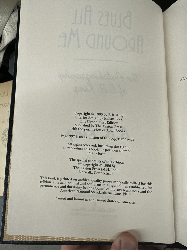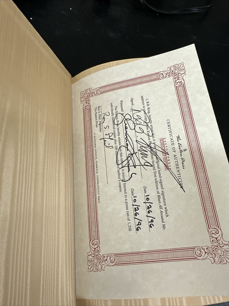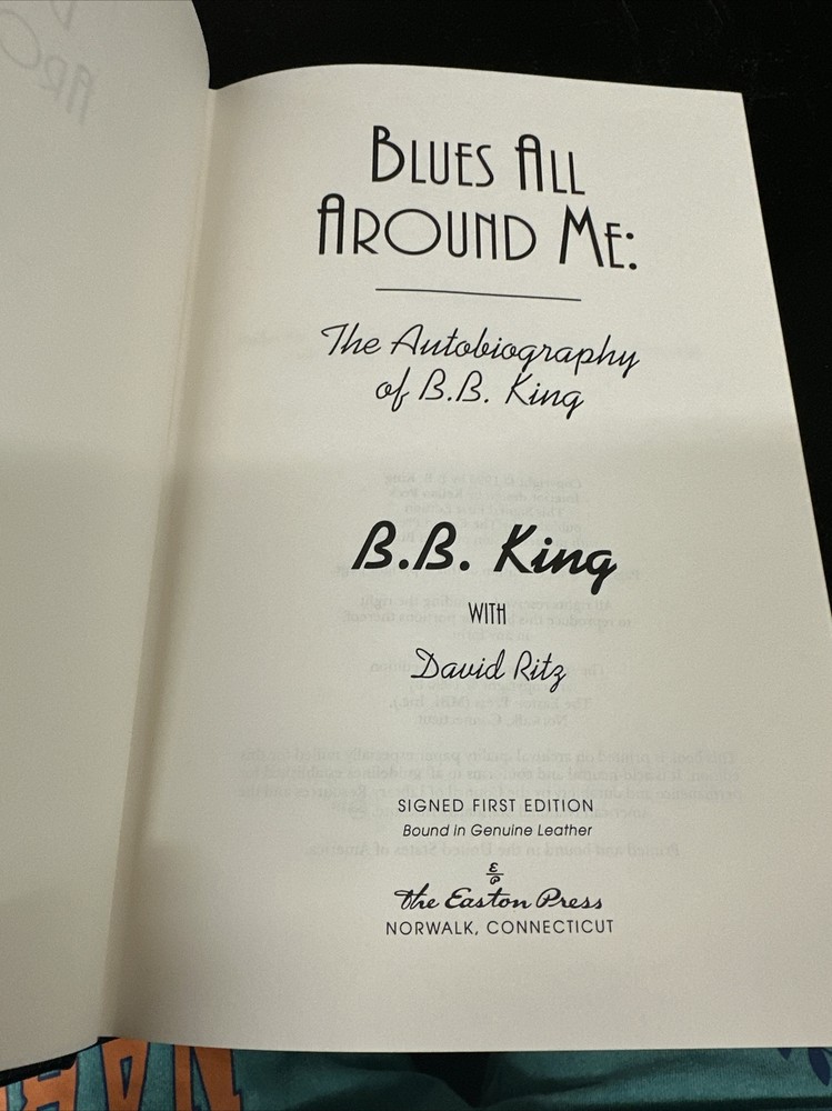The Blues All Around Me BB King Signed First Edition Easton Press Leather Book. Beautiful book in excellent condition, comes with certificate of authenticity.