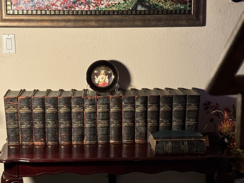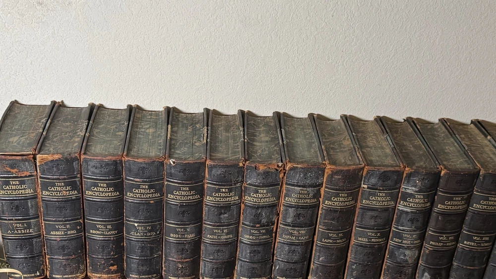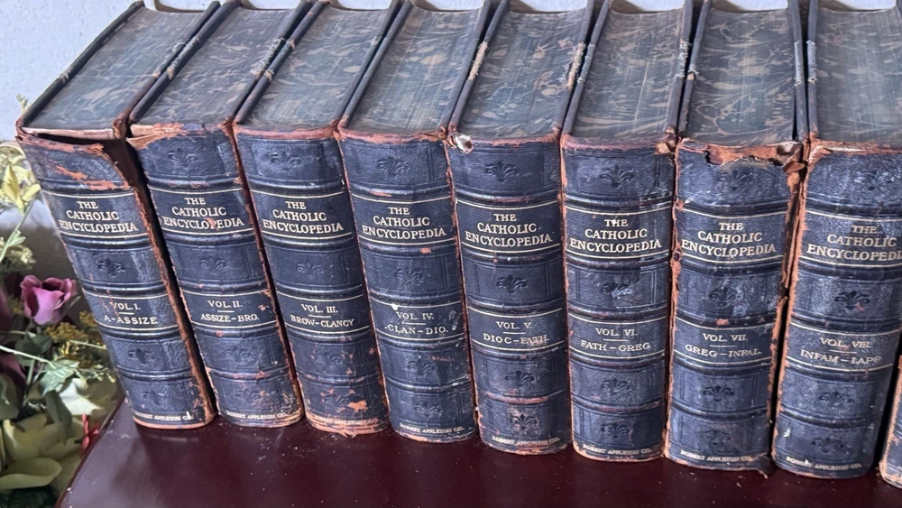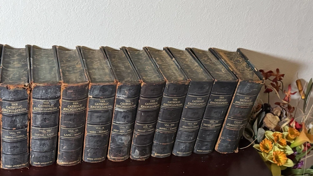 The Catholic Encyclopedia – Complete 15 Volume Set + Index Volume – Vintage Hardcover (1907–1914) Offered here is a complete 16-volume set of The Catholic Encyclopedia, including all 15 volumes plus the separate Index volume. These hardcover editions date back to the early 1900s, making them well over a century old — a rare and historic collection for any serious collector, historian, or library. 🔹 Condition Notes: These books have stood the test of time and show expected signs of age and wear: • Some volumes have weak or partially detached spines • The Index volume has a loose/detached cover on one side • Exteriors show shelf wear, scuffing, and aging consistent with their age • However, the internal pages remain free of markings or highlights no missing page etc I’m more than happy to provide more pictures of the pages on request- This set is offered strictly AS IS, and no returns will be accepted for any reason. Please refer to the photos provided as they are an important part of the description. If you would like more images or close-ups of specific volumes, please reach out before purchase. 📦 Shipping Info: • Due to the size and weight of the set, books may ship in two separate boxes • We ship via FedEx or UPS with tracking and insurance • We aim to ship same-day whenever possible ⚠️ By purchasing this set, you acknowledge that you are buying a vintage, fragile, pre-owned item in as-is condition, with no guarantees beyond what is described and shown. 📚 A truly historic and faith-filled collection, ready to find a new home where it will be valued and preserved for years to come.