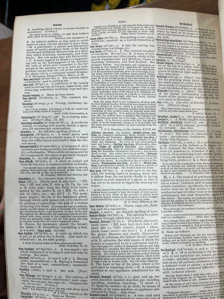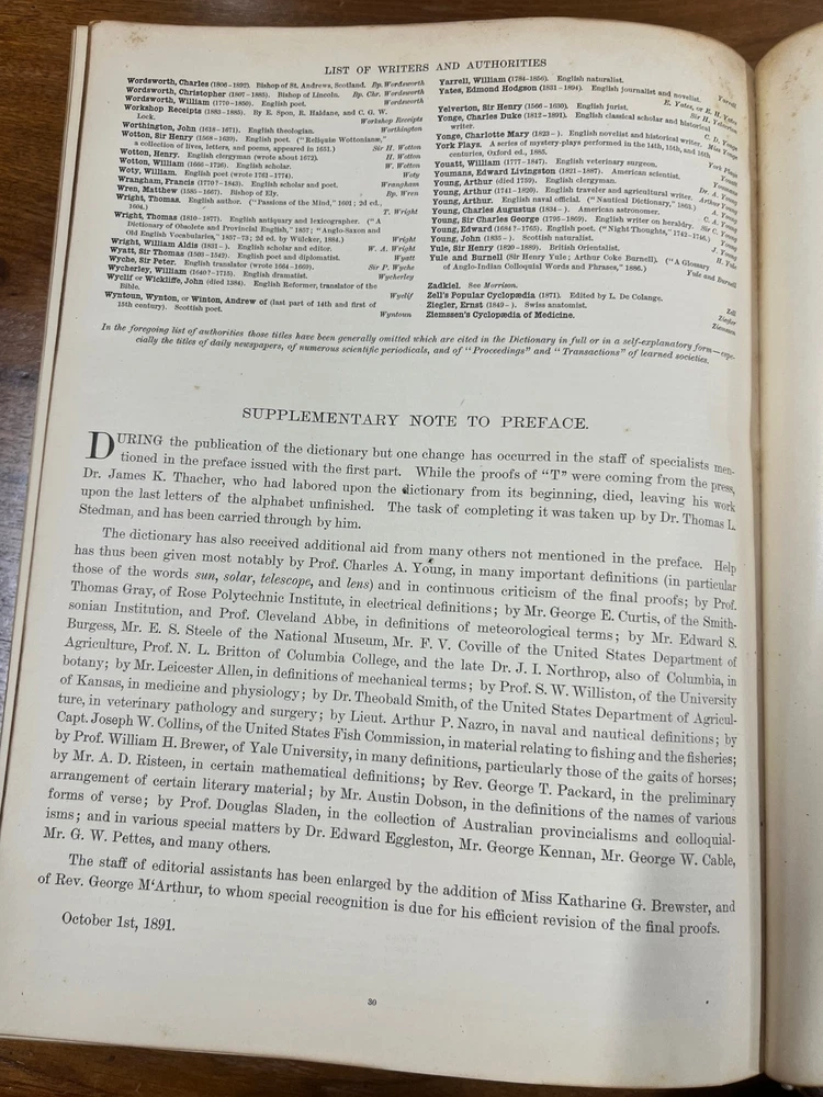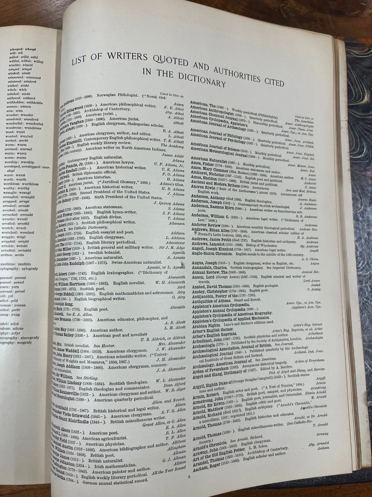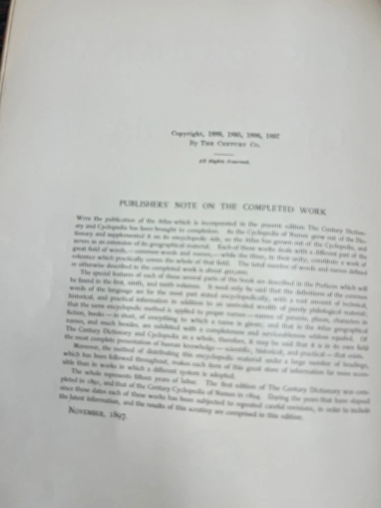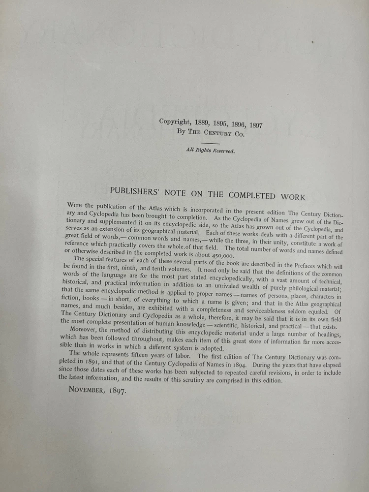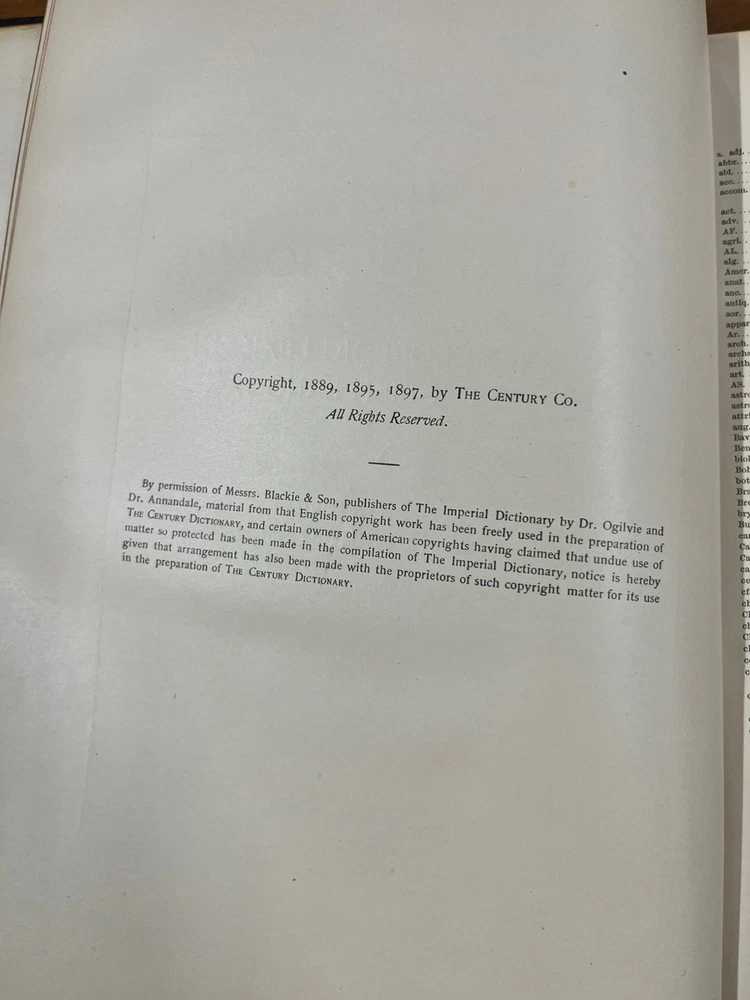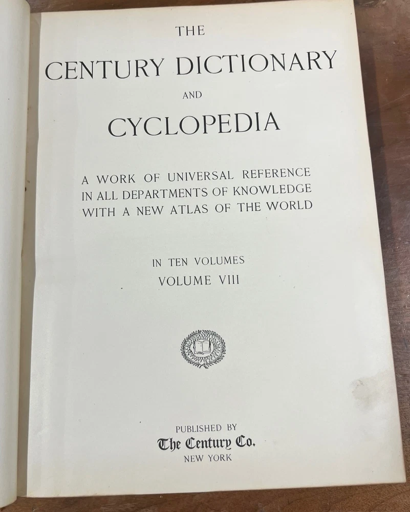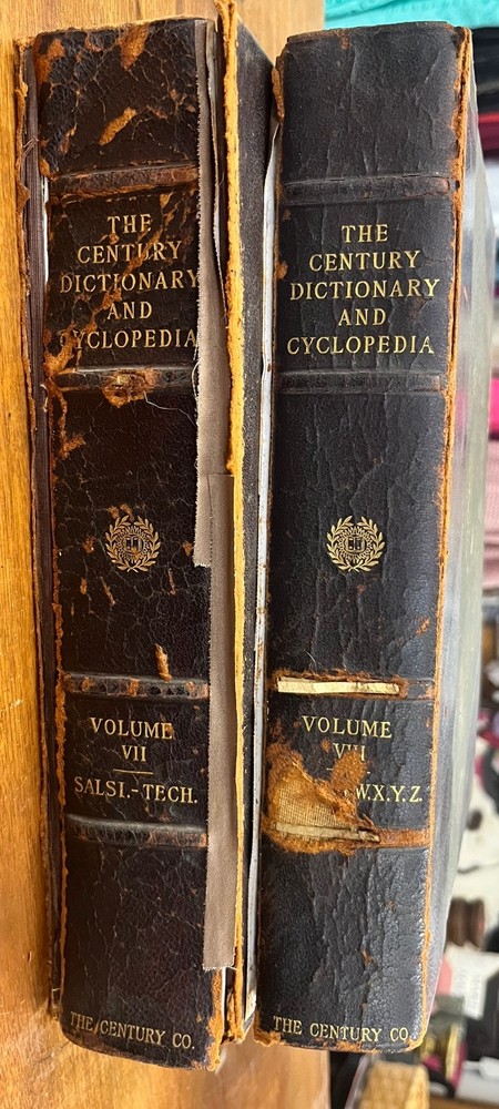Volumes 7 & 8 of the Century Dictionary & Cyclopedia c. 1897 - The rest of the volumes are listed in separate listings so please check those out too! Vol 7 is Salsi. - Tech (6208 pgs.) In pretty good shape -It looks like someone repaired at one time with binding tape and put the covers on upside down - so you have to flip the book to read. Front and back covers are attached -condition of covers as shown in pics. Pages are in great shape - few minor tears from page turning but for age in great shape. Vol. 8 is Tech. - W.X.Y.Z. (7046 pgs) and 2 indexes in back as shown in photos. Also pretty good shape - front and back cover is attached. Some repairs with binding tape at one time. Binding has some damage as shown in photos. Some minor tears on some pages from turning page. Overall great shape for age of book. Both measure 12 x 9". The pair weigh almost 15 pounds together so consider that on postage. Please look at photos for condition and ask any questions.
