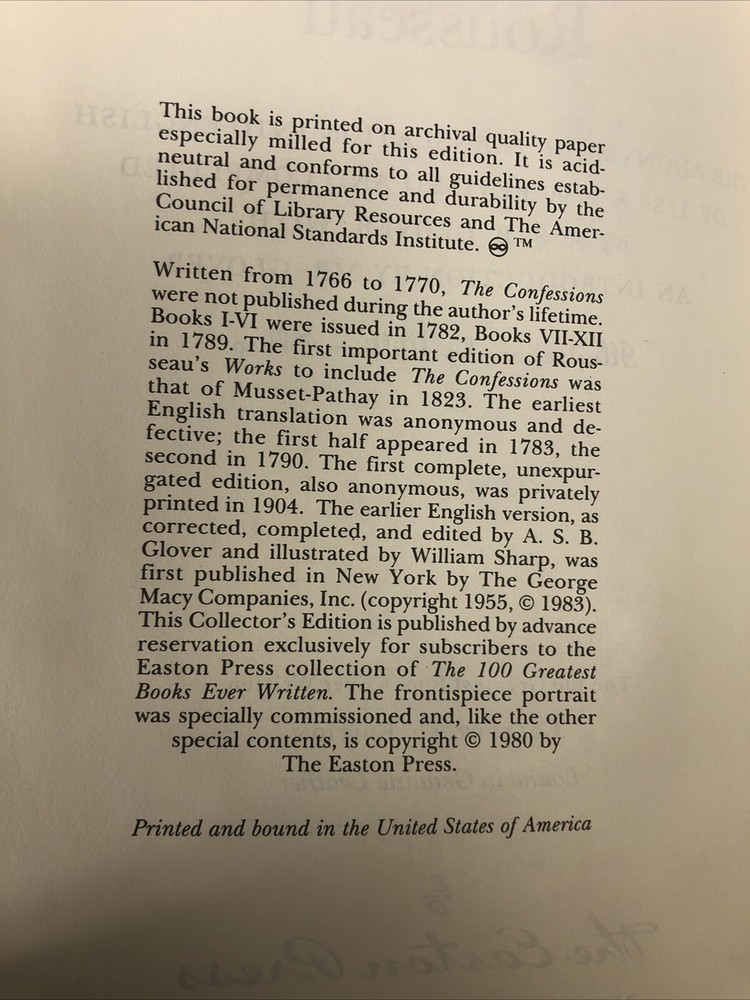 | Book Title | The Confessions of Jean-Jacques Rousseau |