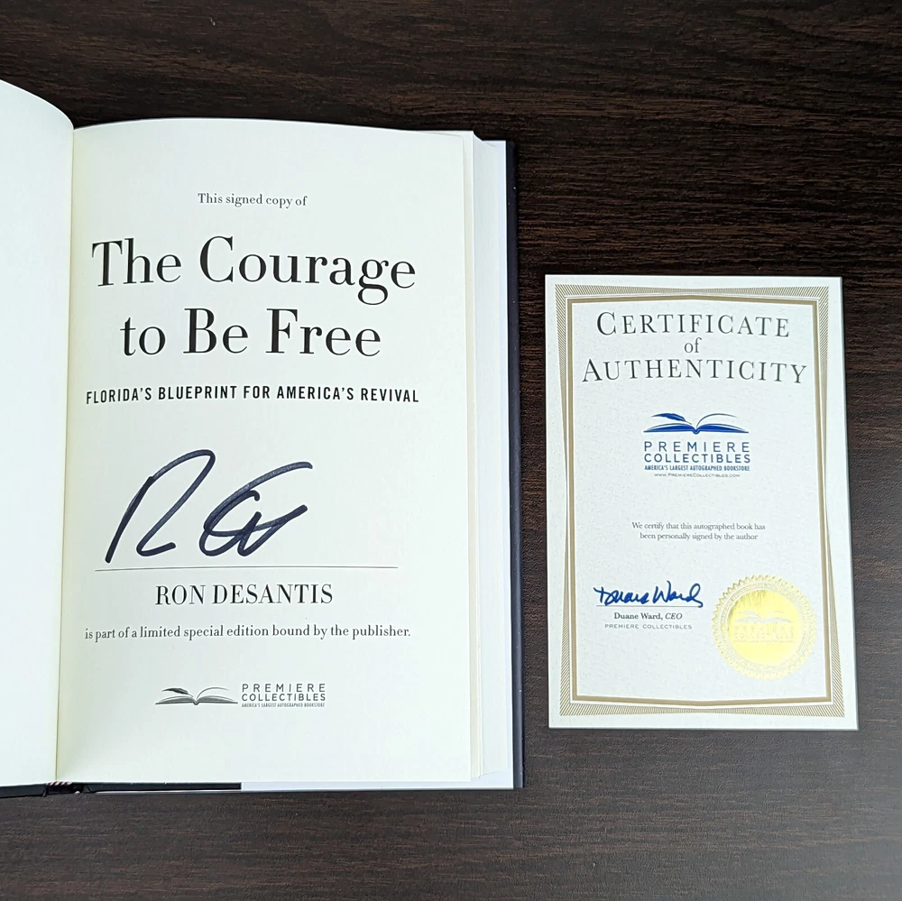 The Courage To Be Free - Florida's Blueprint For America's Revival - SIGNED by Ron DeSantis with COA - Includes COA / Certificate of Authenticity - In Hand and Ready To Ship - Ships Free within 24 hours and will be carefully packaged to reach you safely Buy with confidence - 100% Positive Feedback Seller since 2003 - Thanks for looking!